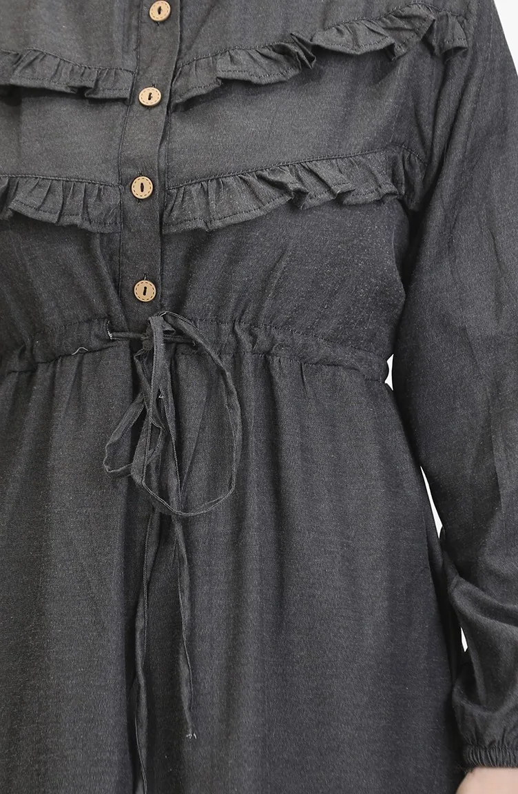 Front Ruffle Denim Dress 0486-01 Smoke 0486-01