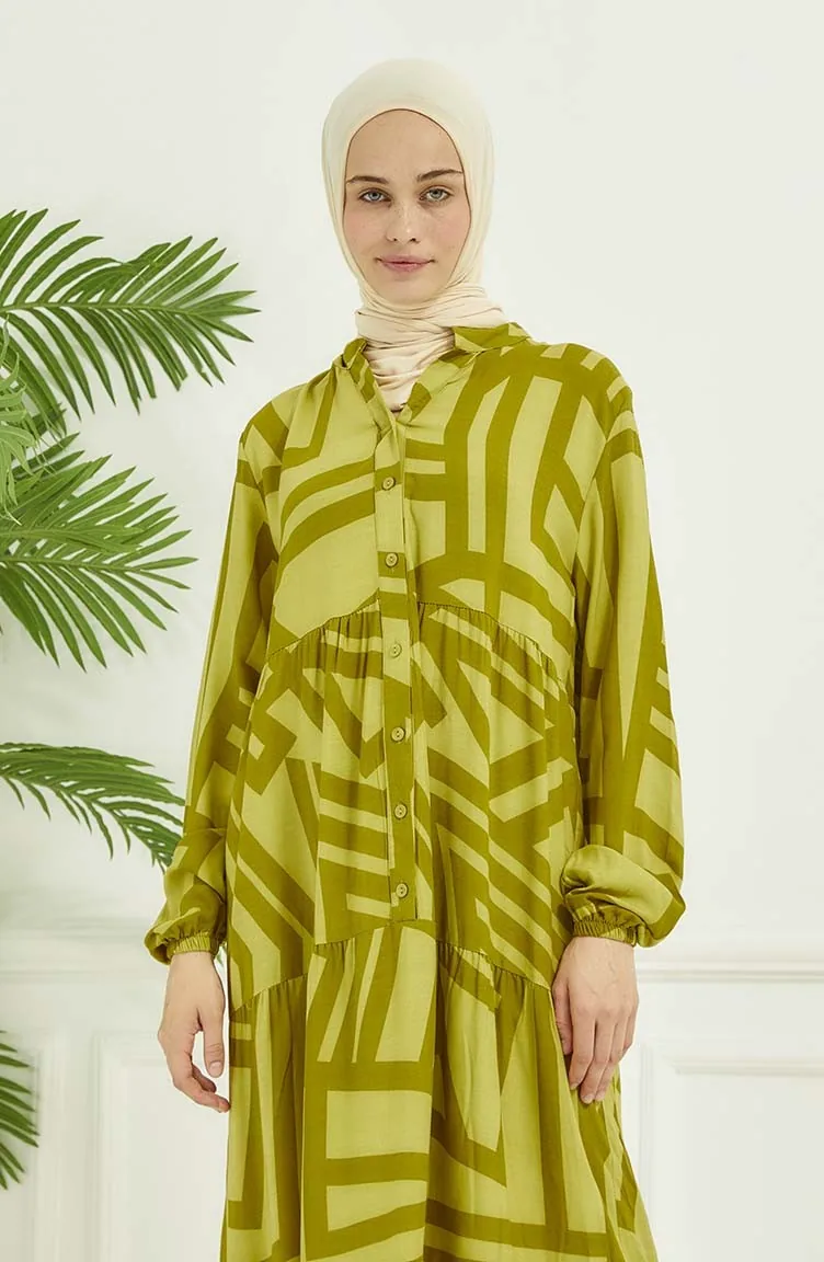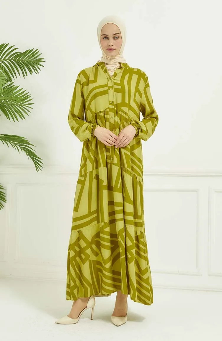 Geometric Pattern Dress 4106-06 Oil Green 4106-06