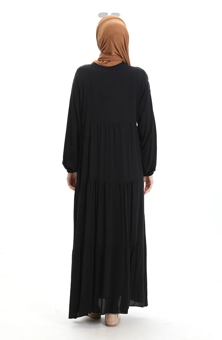 Half Buttoned Dress With A Grandad Collar 0090-01 Black 0090-01