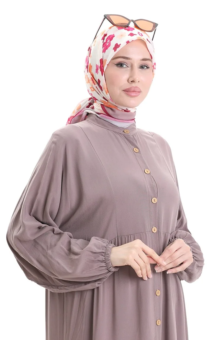 Half Buttoned Dress With A Grandad Collar 0090-02 Mink 0090-02