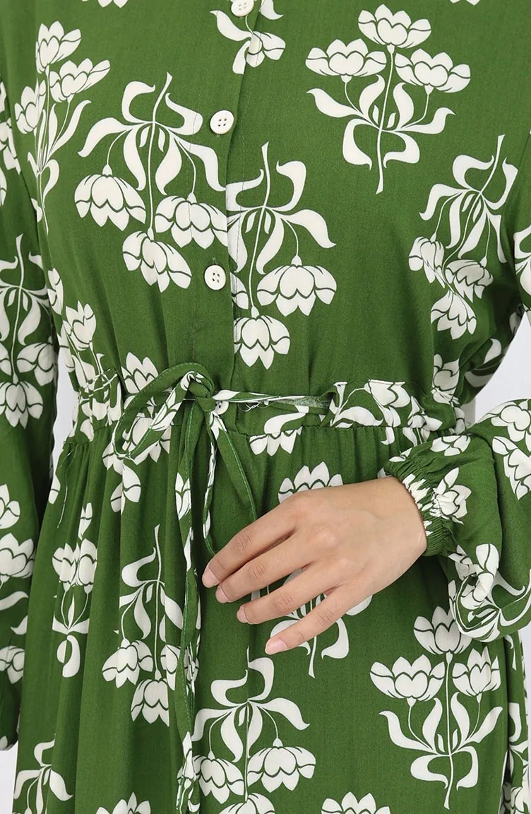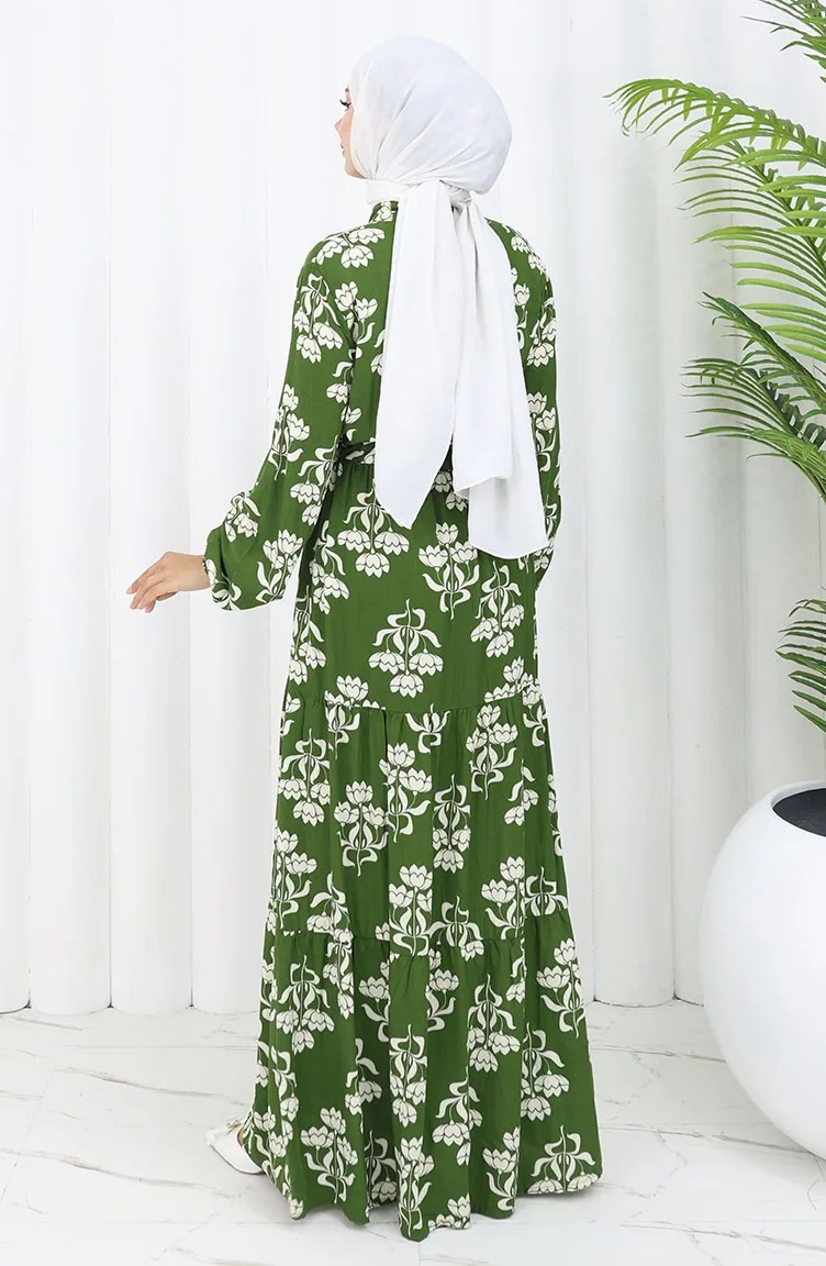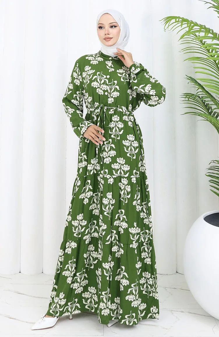 Half Buttoned Patterned Dress 2052-03 Khaki 2052-03