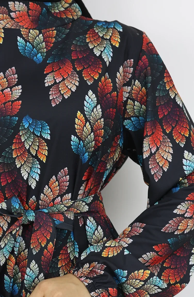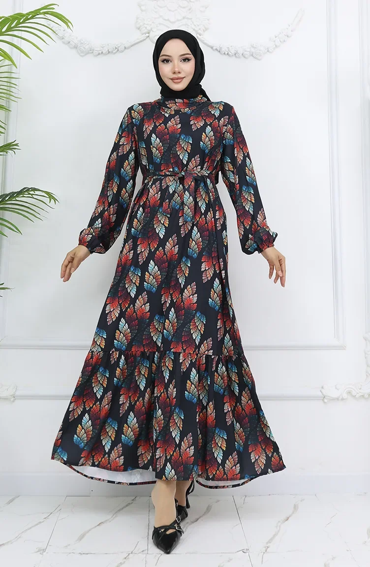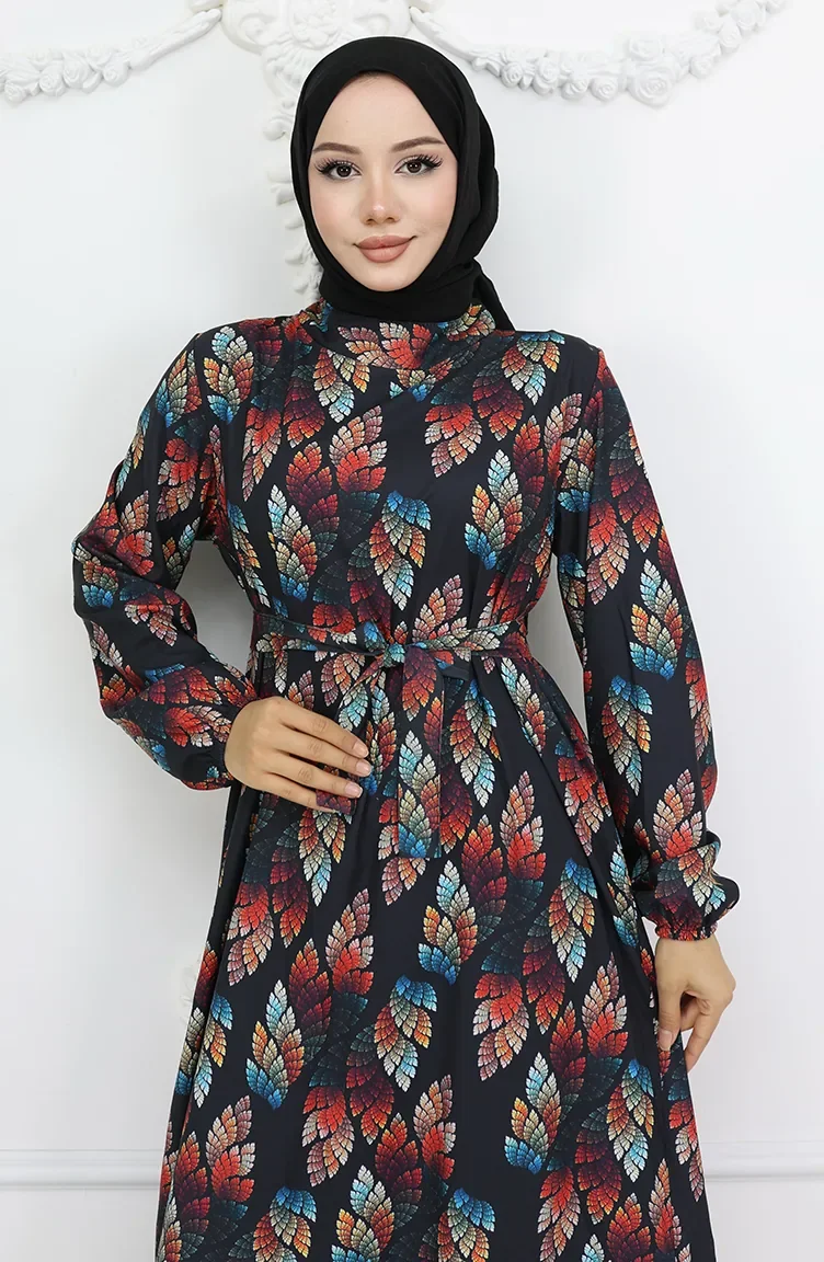 Jessica Fabric Patterned Dress 0033-02 Black Coral 0033-02
