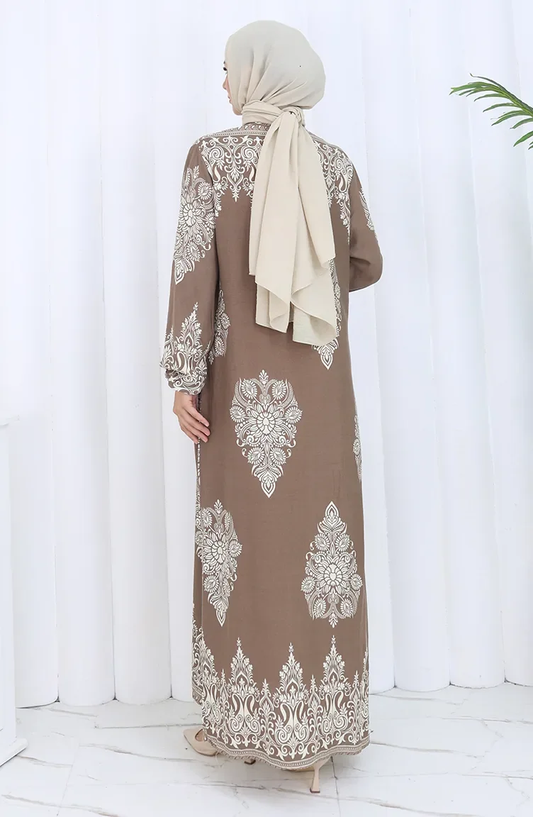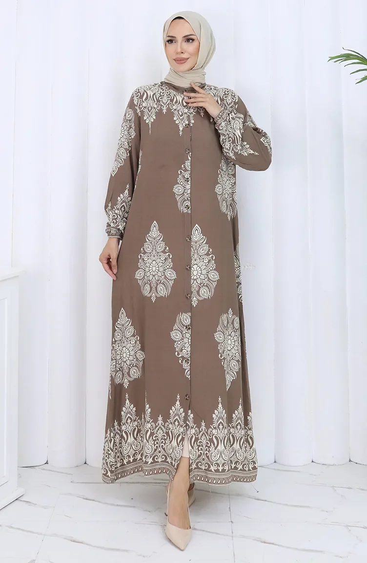 Judge Collar Patterned Dress 2126-01 Beige Mink 2126-01