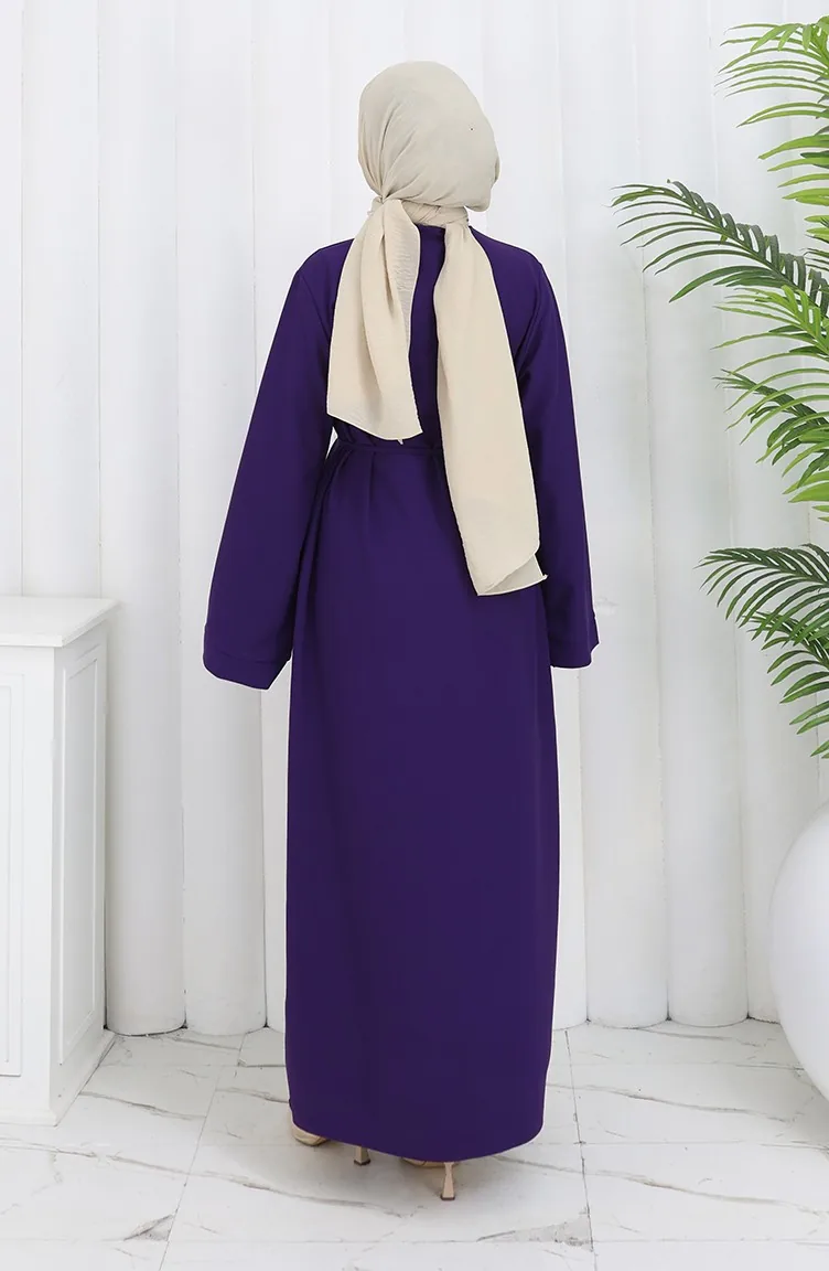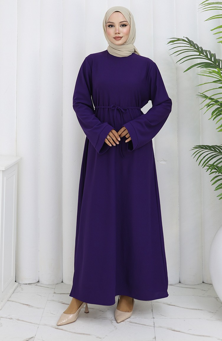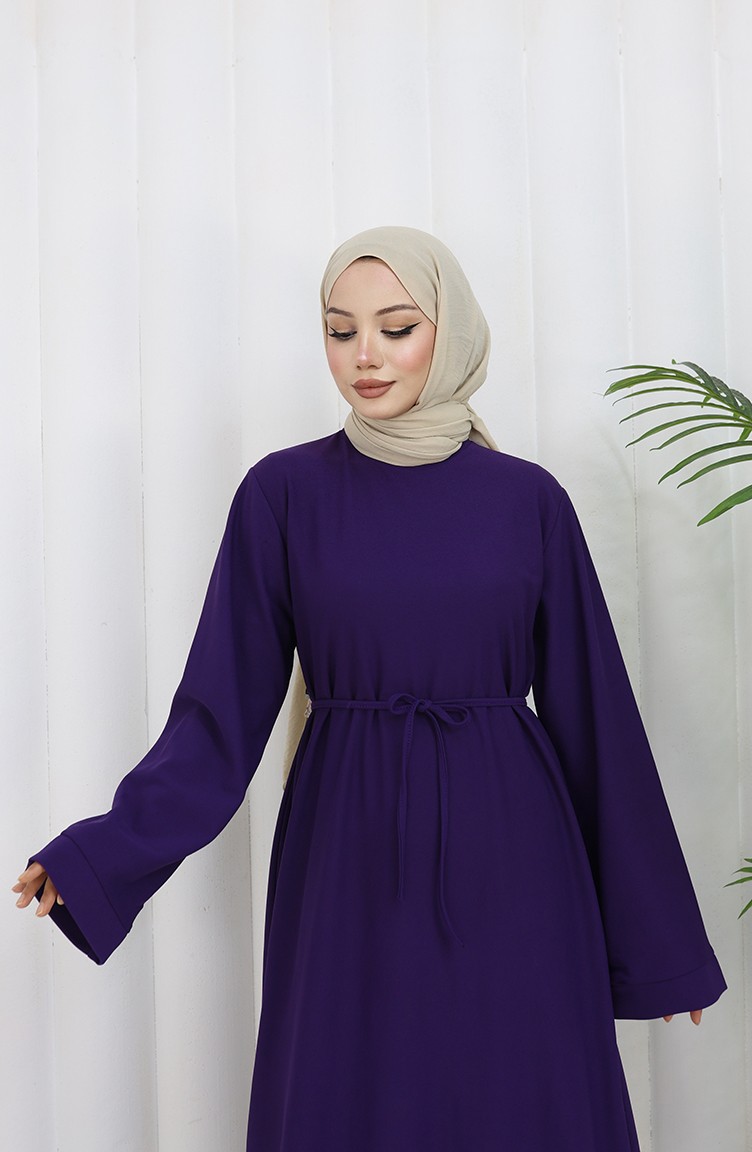 Lace-Up Dress With Cuffed Sleeves 2160-04 Purple 2160-04