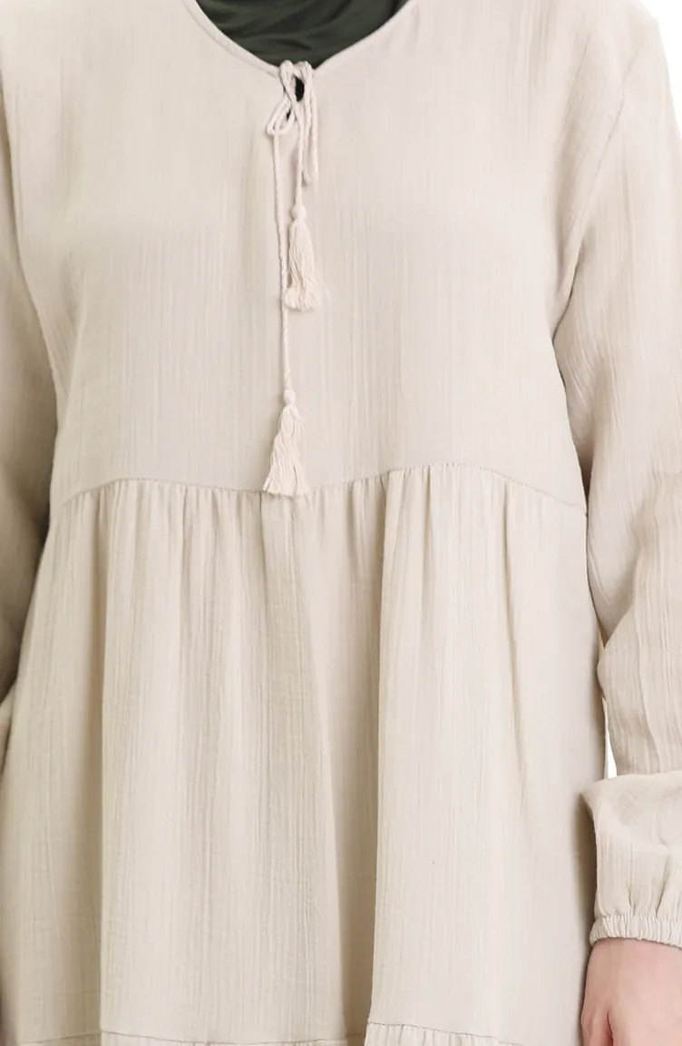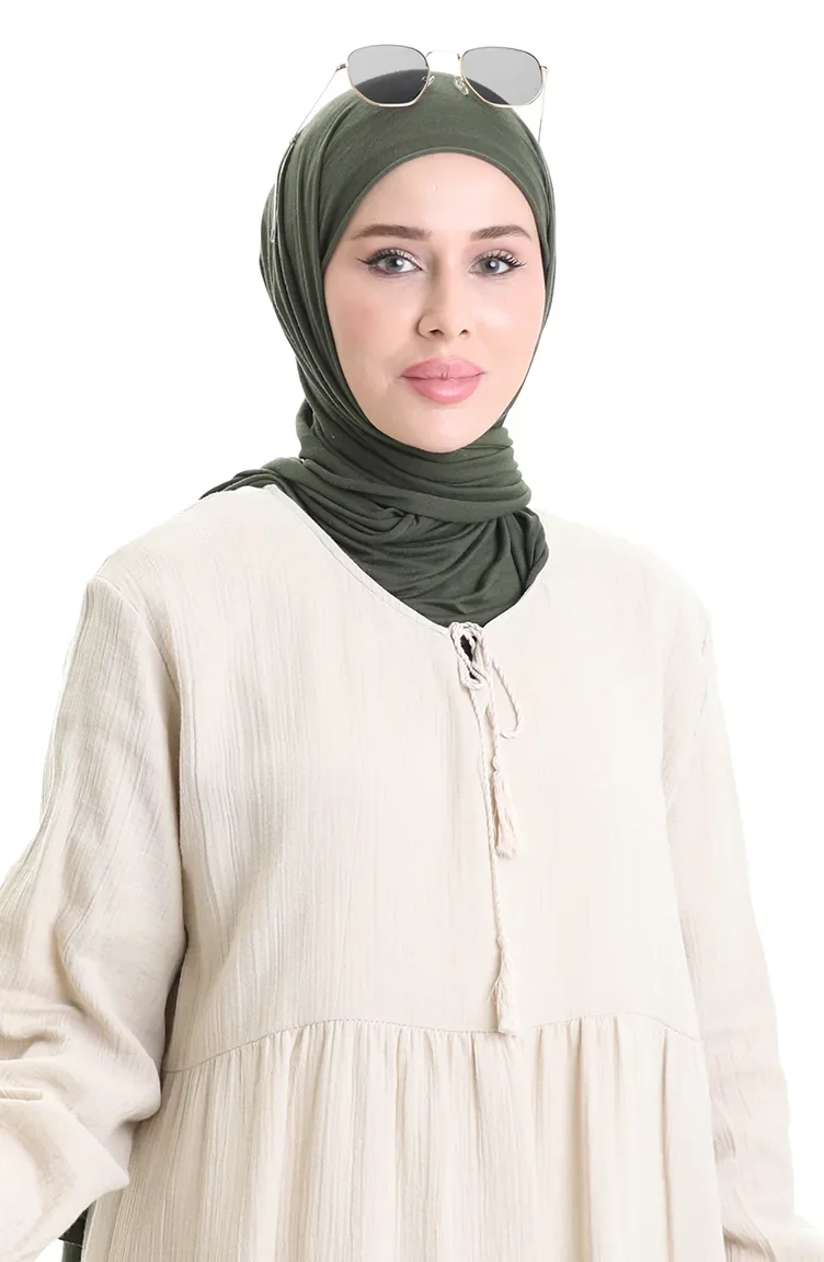 Viscose is a type of synthetic fabric and is convenient to use. It has a plain appearance. Since the fabric thickness of the model is in the middle level, the liner is used. It's made of elastic sleeves. Dik Yaka. Designed for summer use. The size worn by the model, is the one on the image.