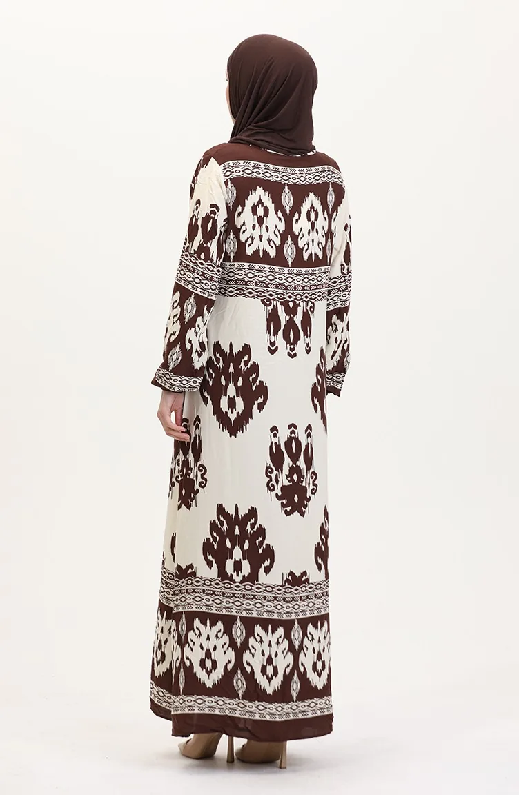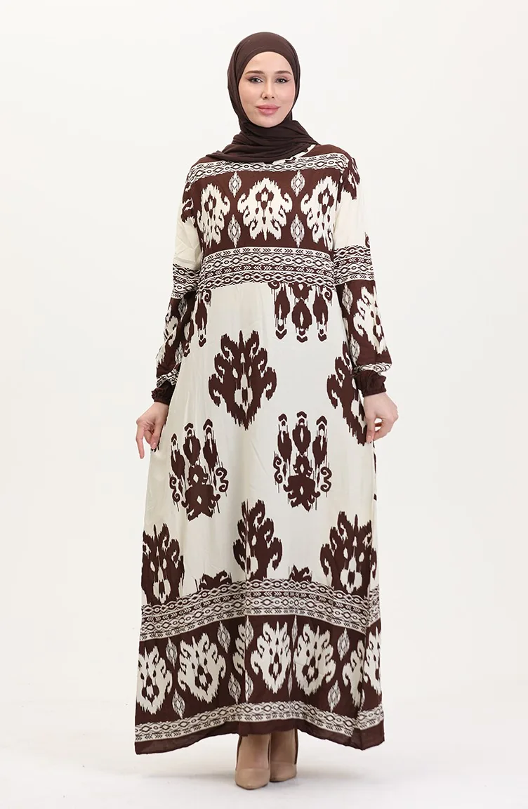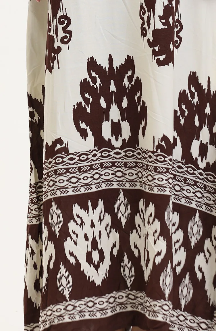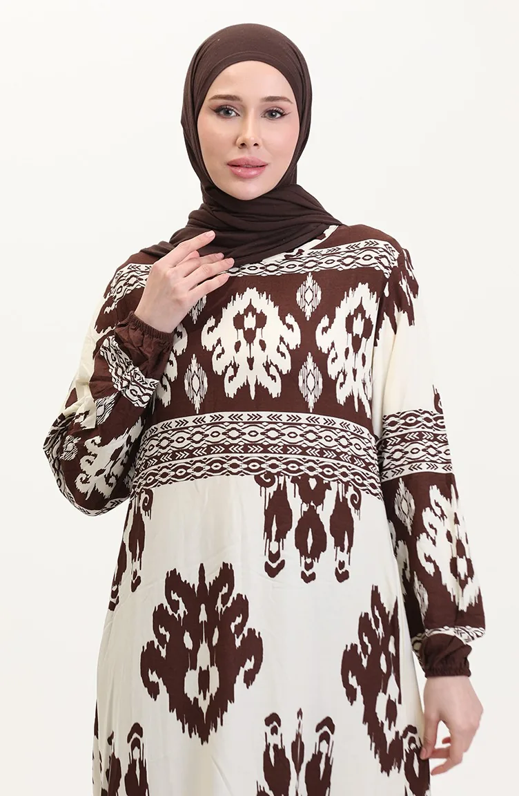 Patterned Viscose Dress 0006-01 Brown Beige 0006-01