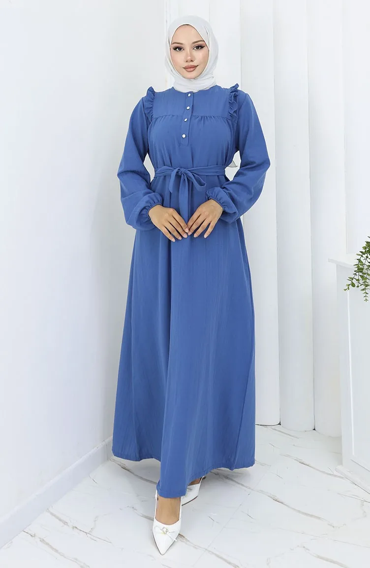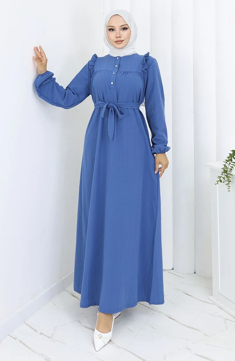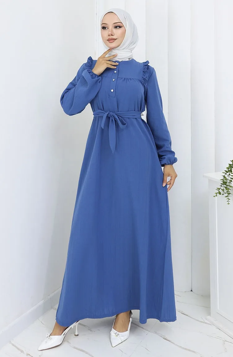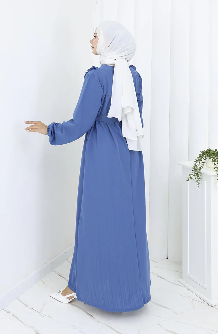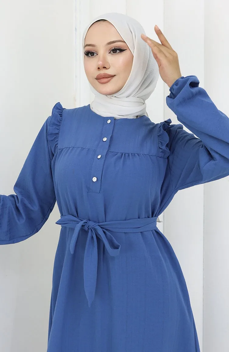 Ruffle Belted Dress 2064-03 Indigo 2064-03