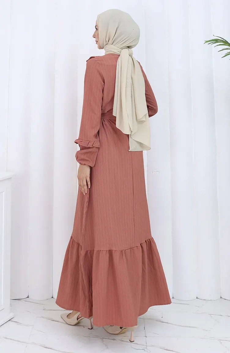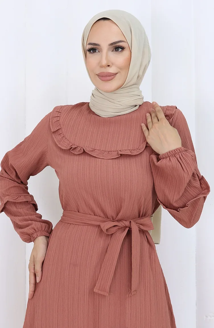 Ruffled Belted Dress 2123-02 Dusty Rose 2123-02