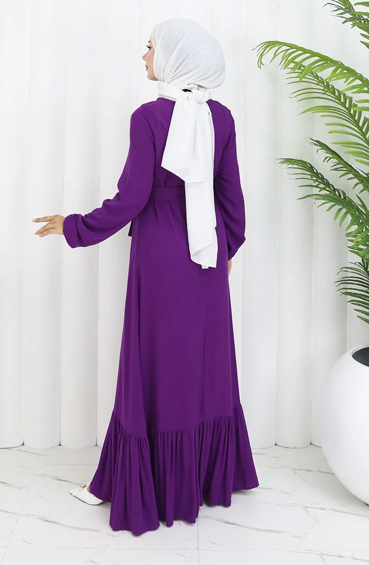 Ruffled Belted Dress 4103-08 Purple 4103-08