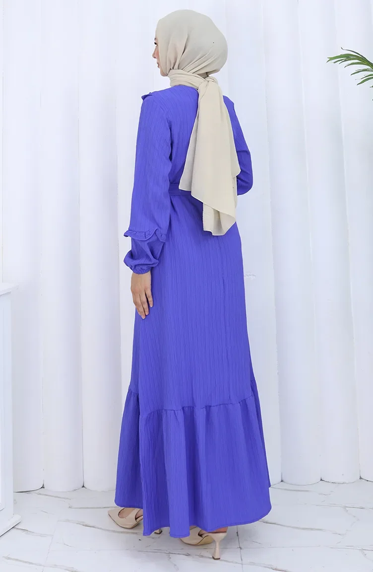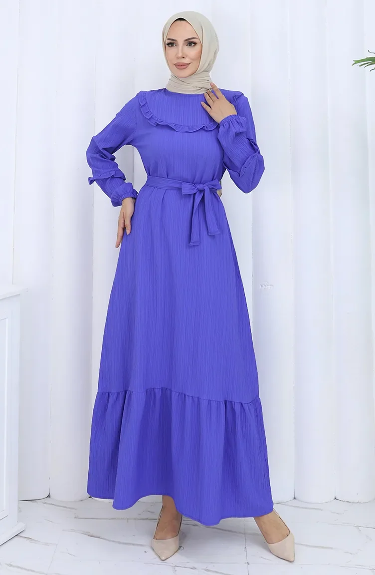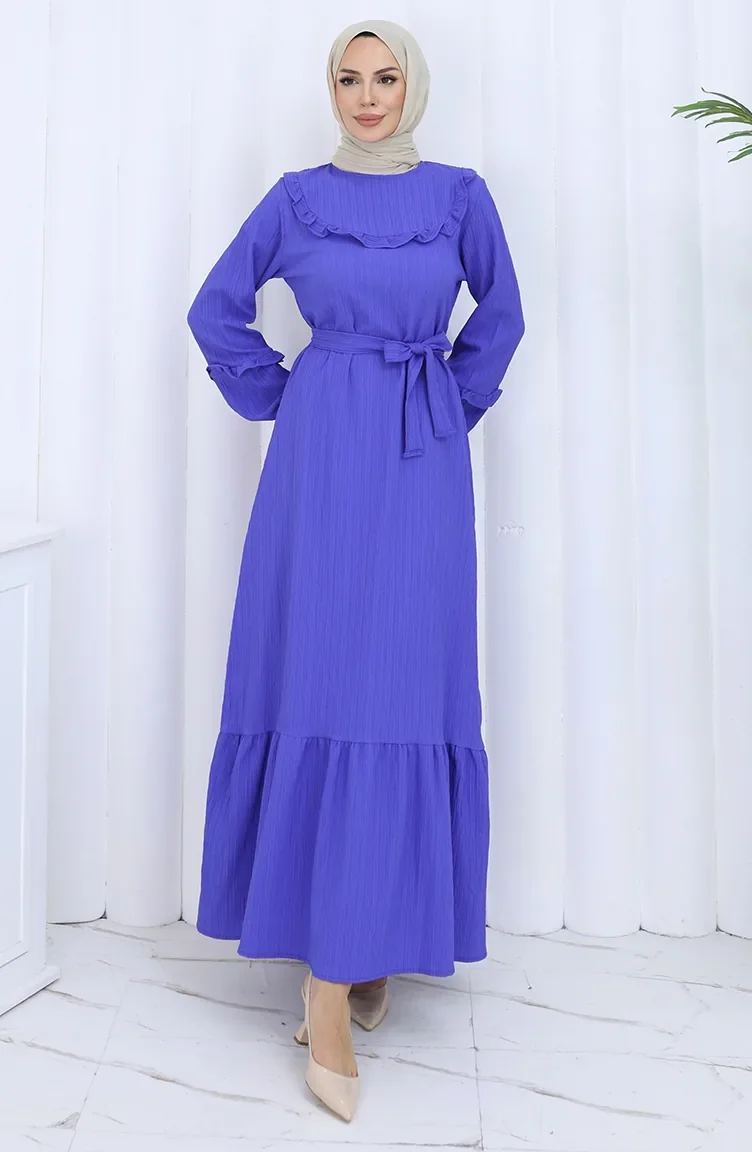 Ruffled Collar Belted Dress 2123-04 Eggplant Color 2123-04