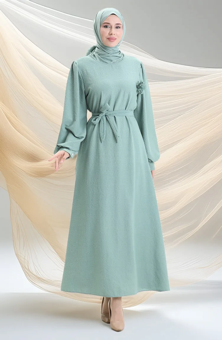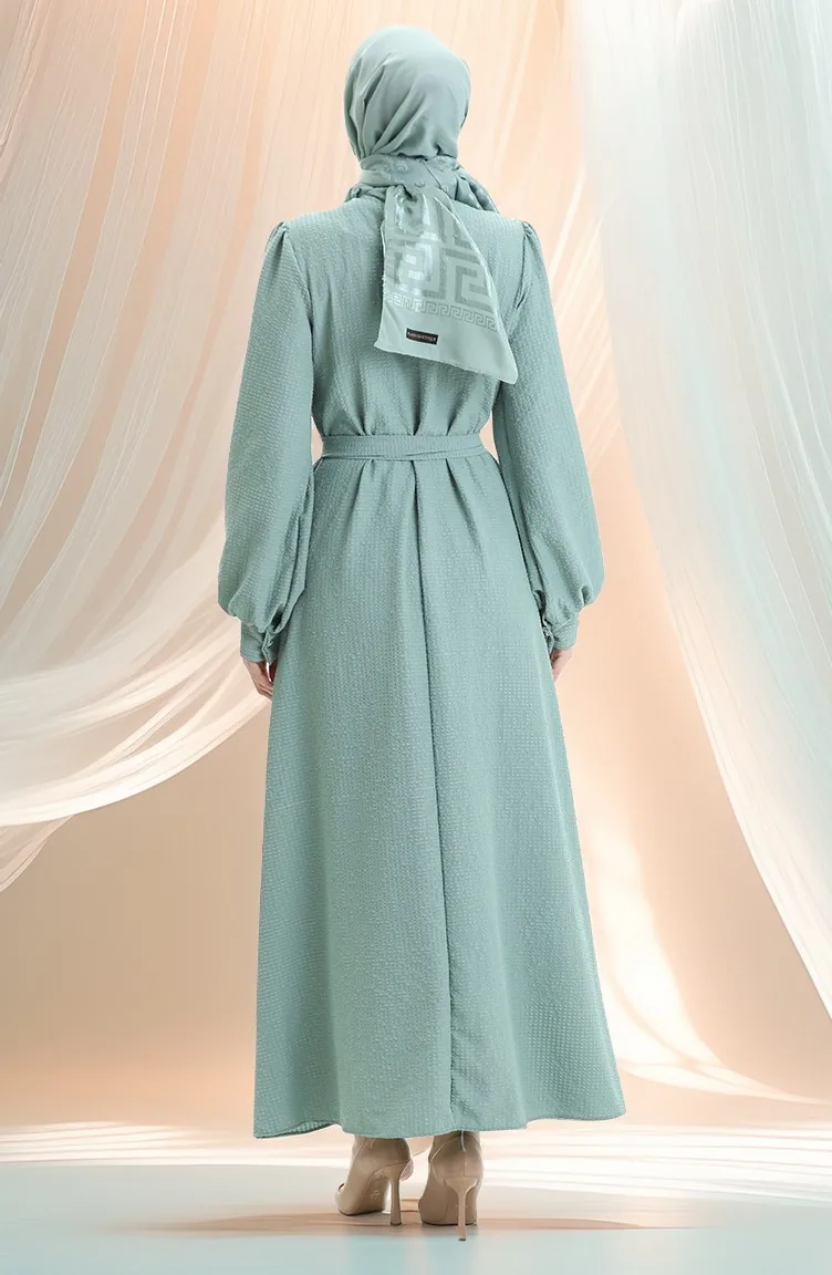 Seersucker Belted Dress 2043-05 Almond Green 2043-05