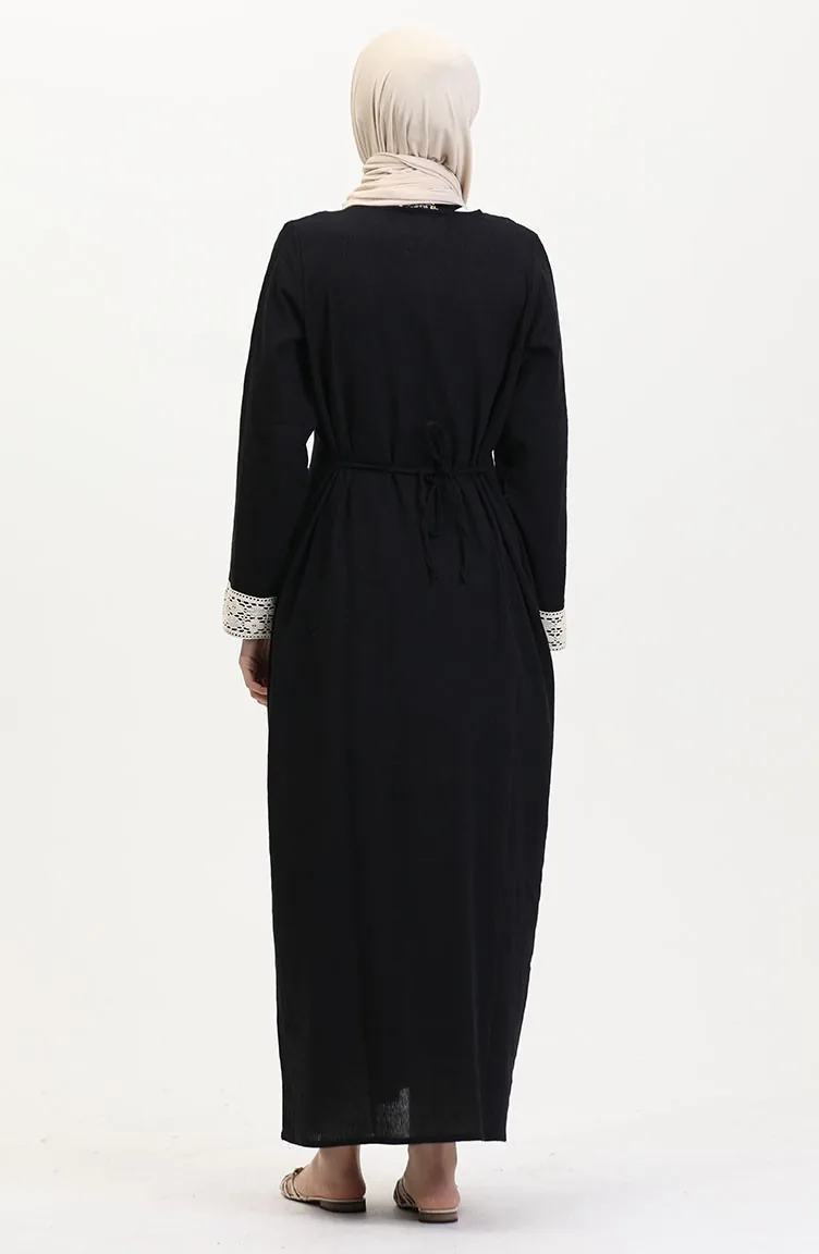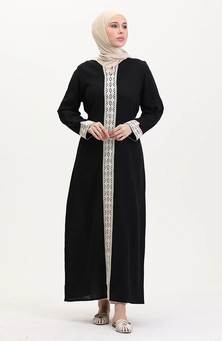 Black color is used. Şile Bezi. It has a plain appearance. Long sleeve product. Designed for summer use. The size worn by the model, is the one on the image.
