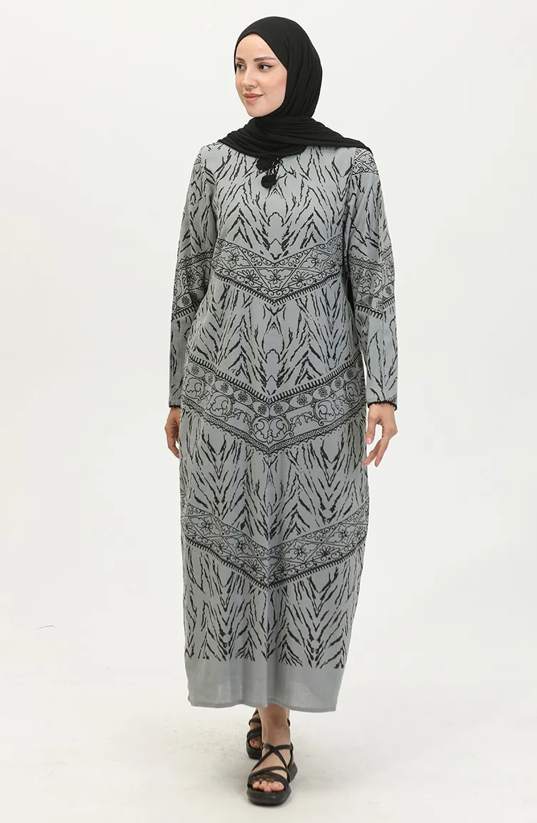 Şile Fabric Patterned Dress 4444-03 Almond Green 4444-09