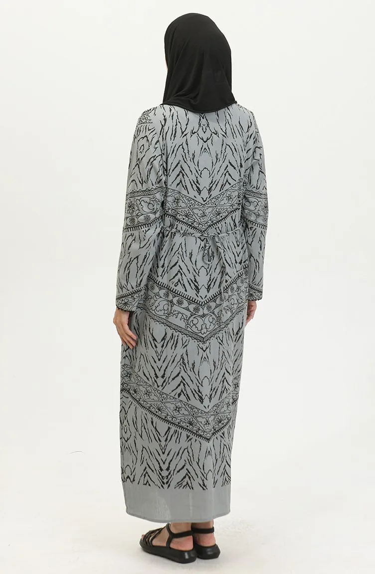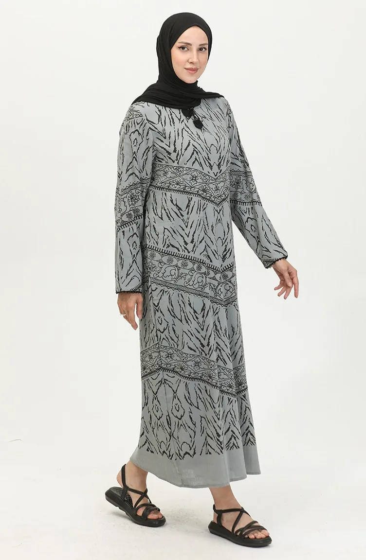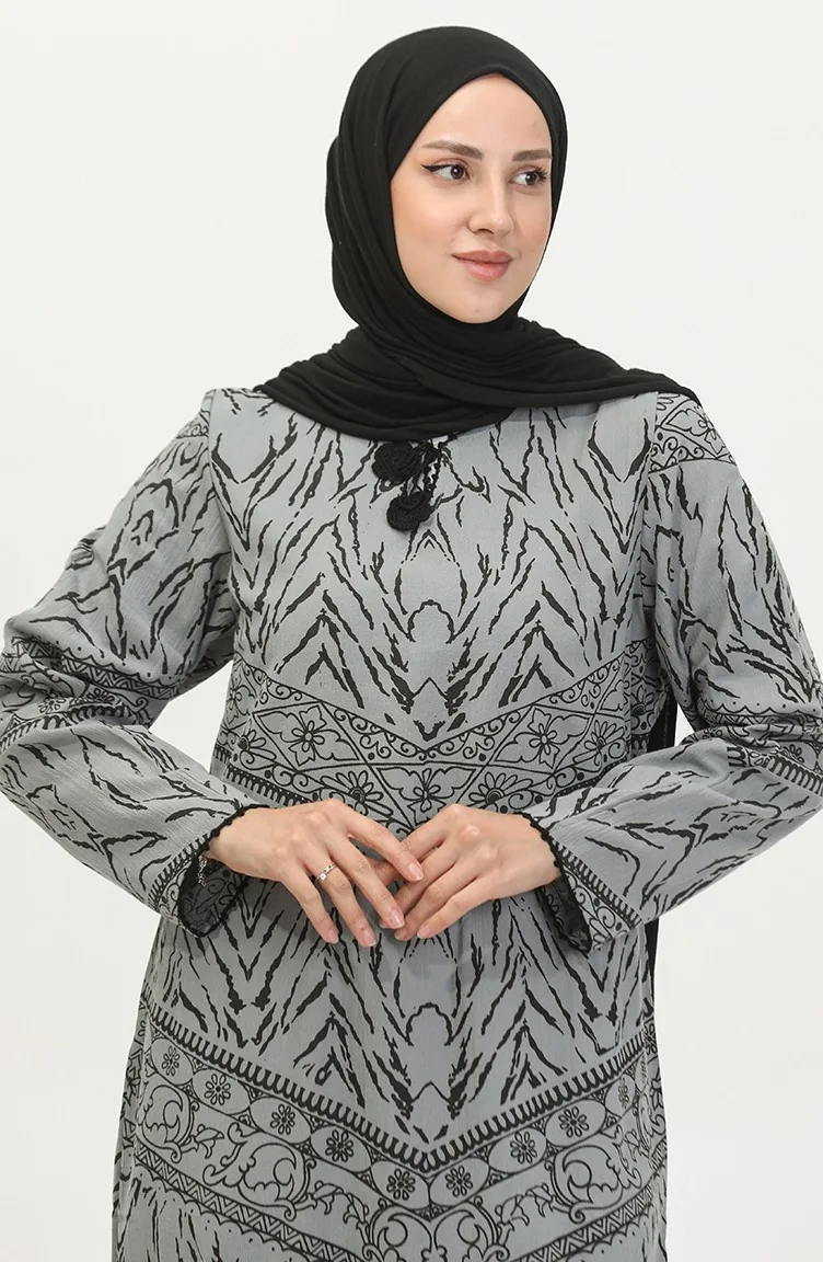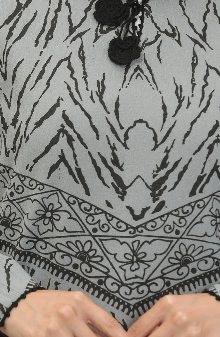 Gray color is used. Şile Bezi. Designed with patterned fabric. The product is used unlined. Long sleeve product. The Zero collar is preferred for all types of clothing. Designed for summer use. The size worn by the model, is the one on the image.