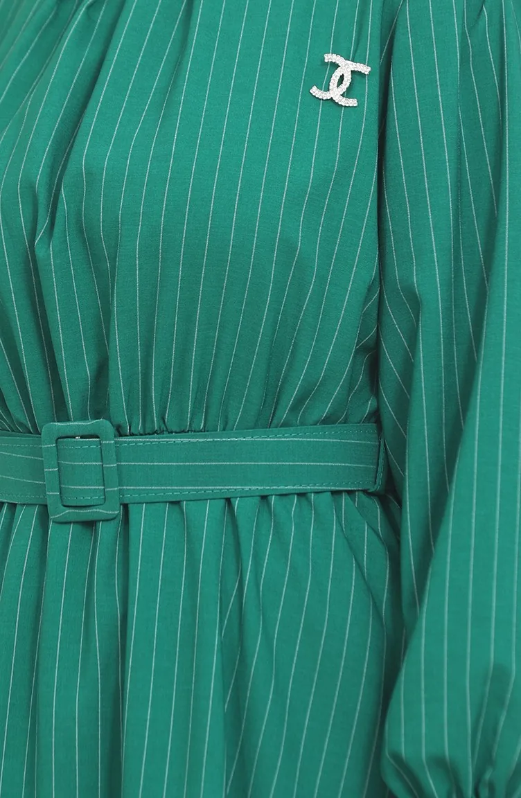 Striped Belted Dress 0434-04 Green 0434-04