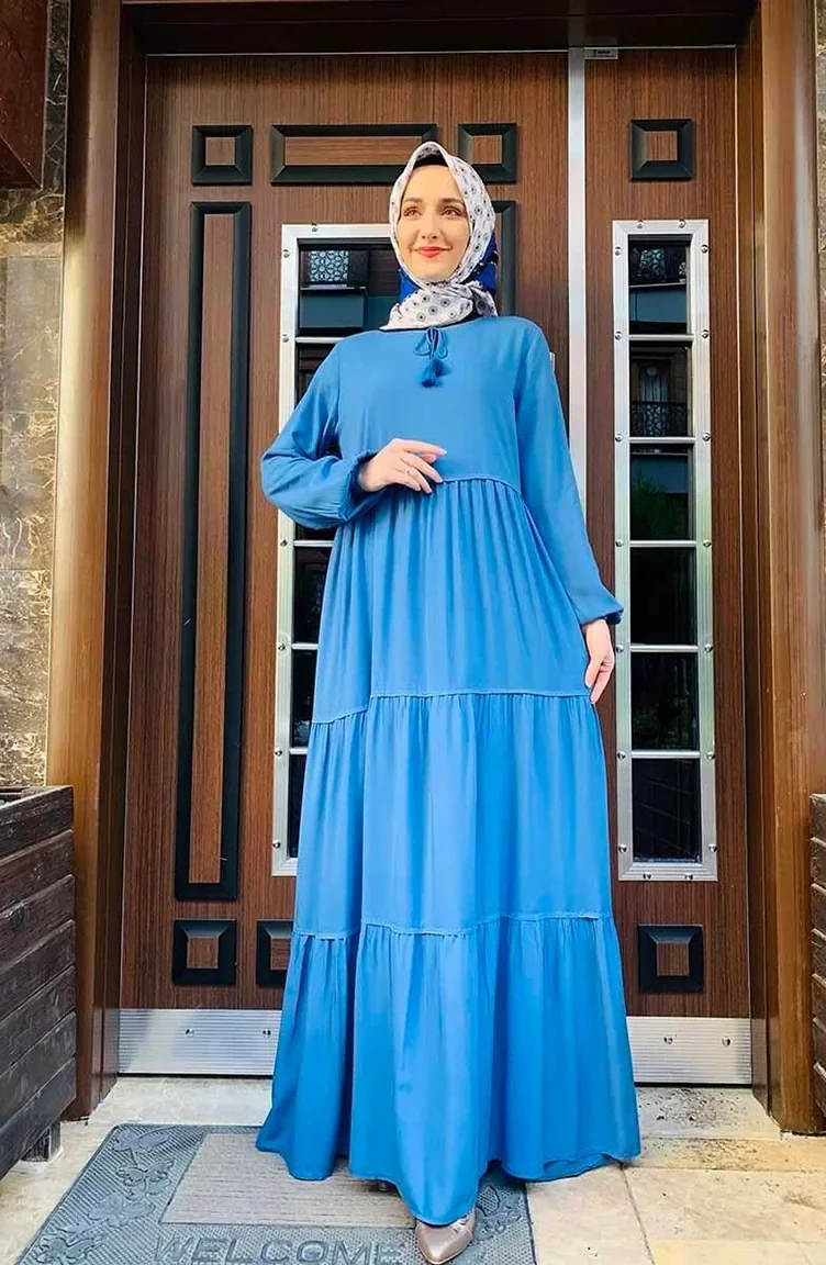 Tassel Detailed Dress 0229-10 Indigo 0229-10