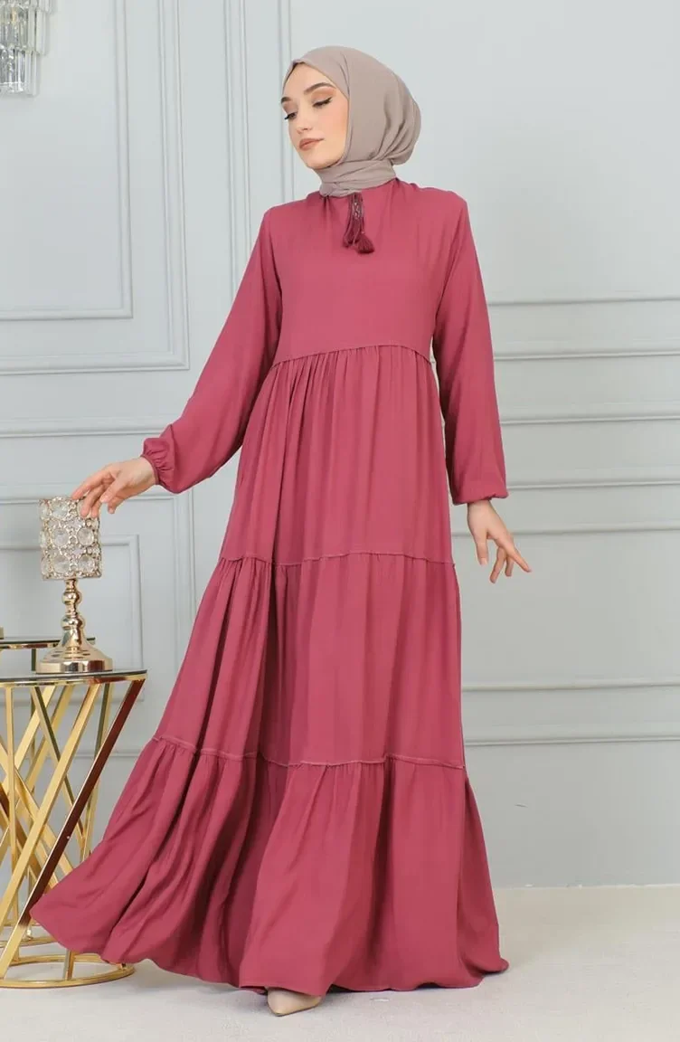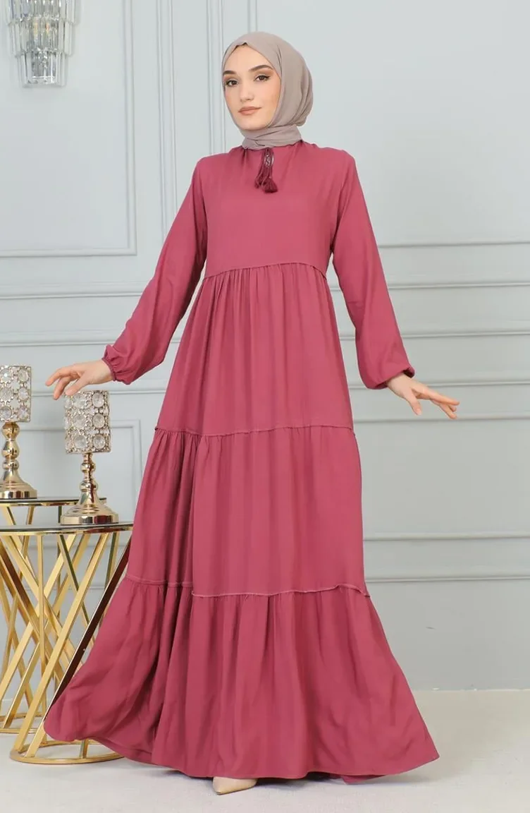 Tassel Detailed Dress 0229-11 Dusty Rose 0229-11