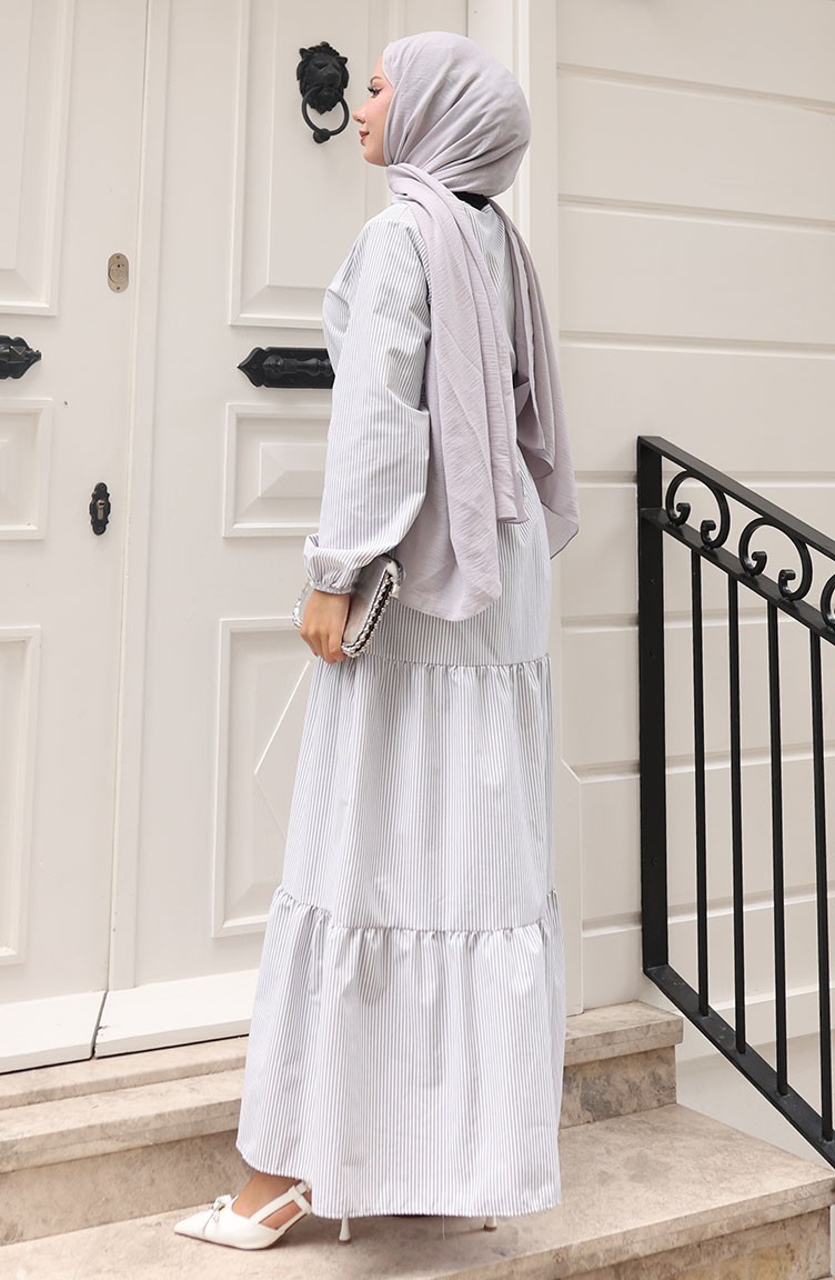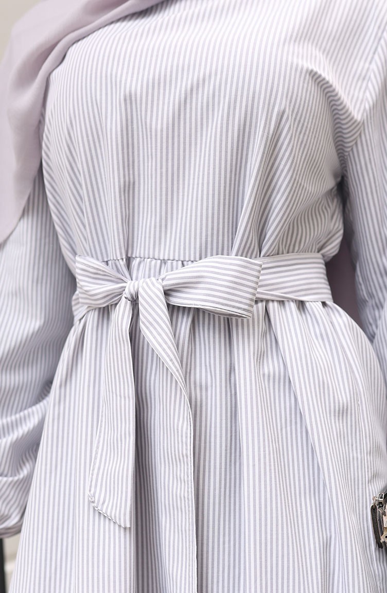 Terikoton Striped Belted Dress 0101-01 Gray 0101-01