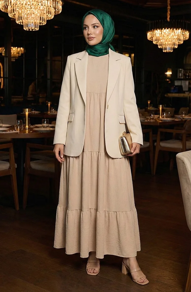 Tiered Collar Layered Dress 4107-06 Cream 4107-06