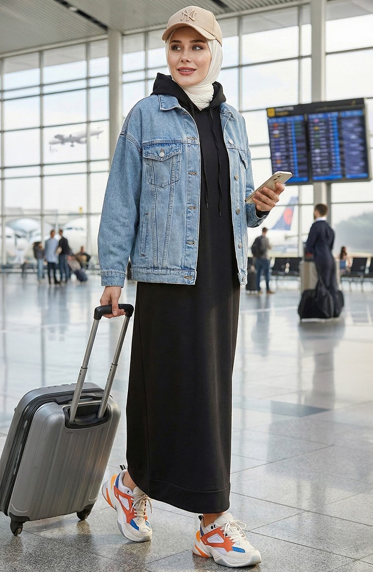 Two Thread Hooded Sports Dress 0190-09 Black 0190-09