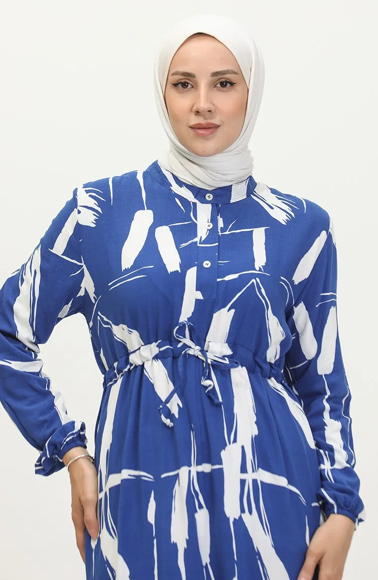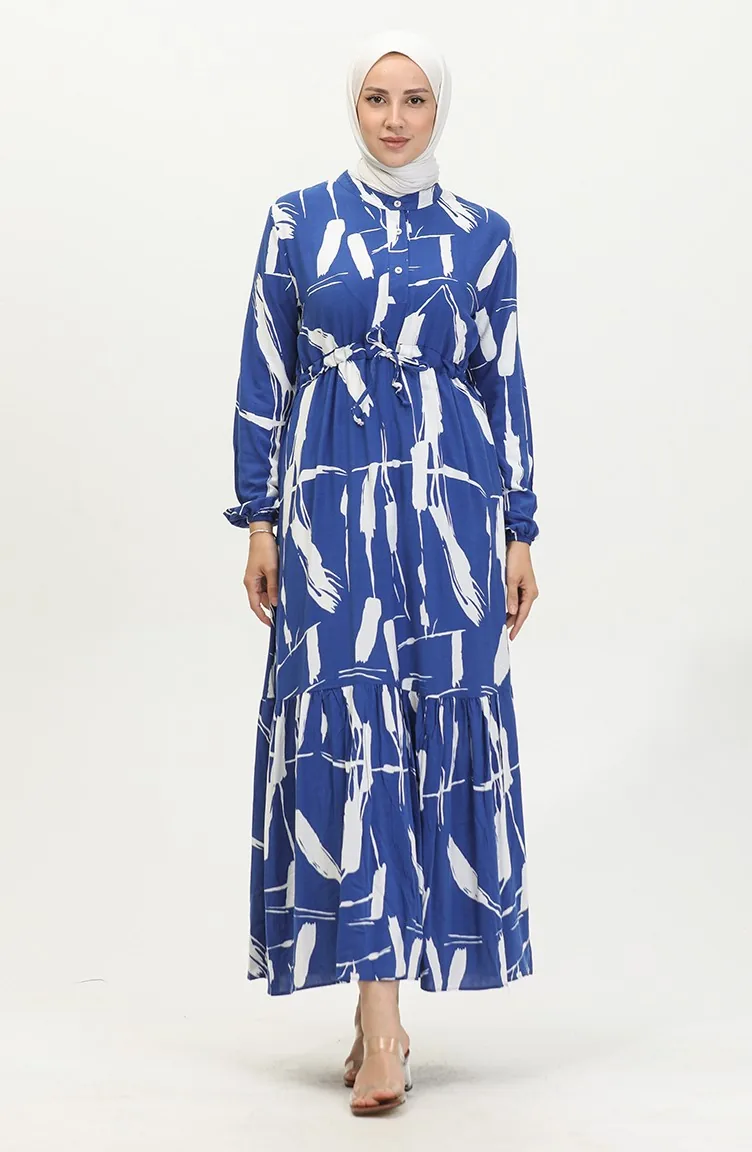 Viscose Brush Pattern Gathered Dress 81869-01 Saks Blue 81869-01