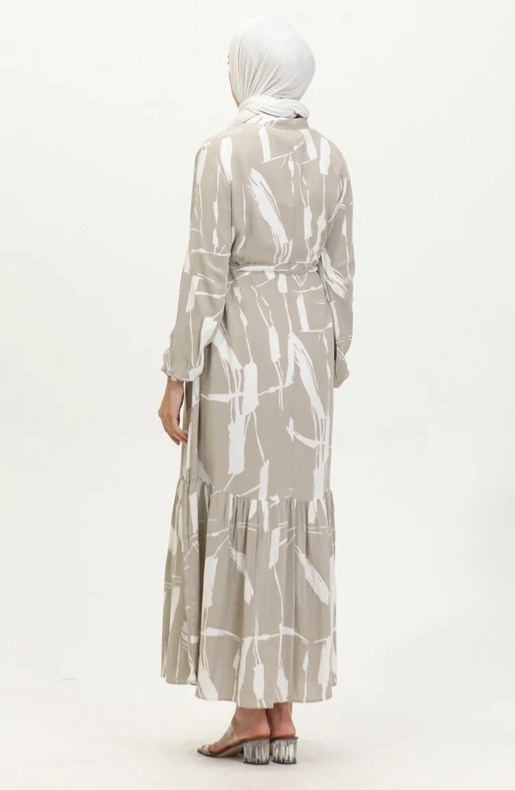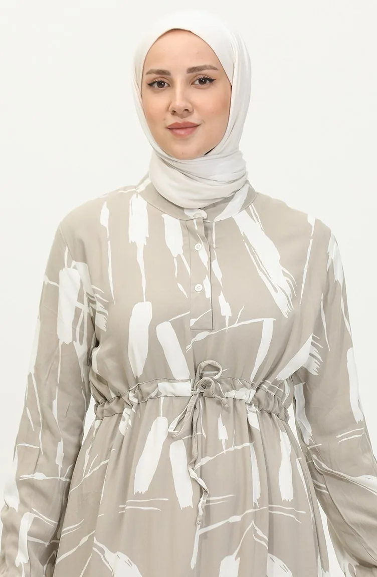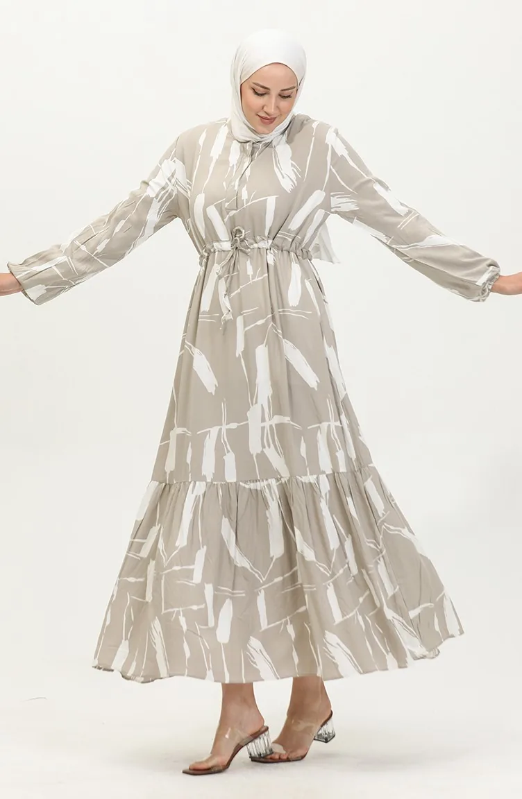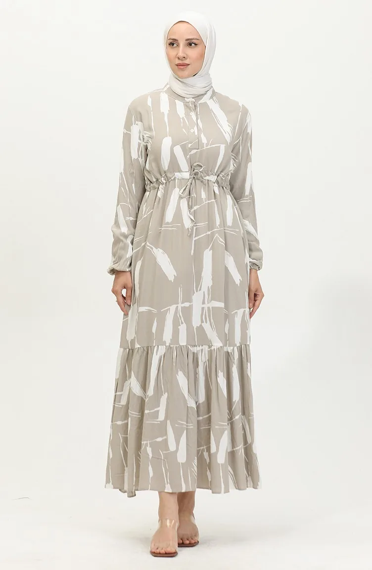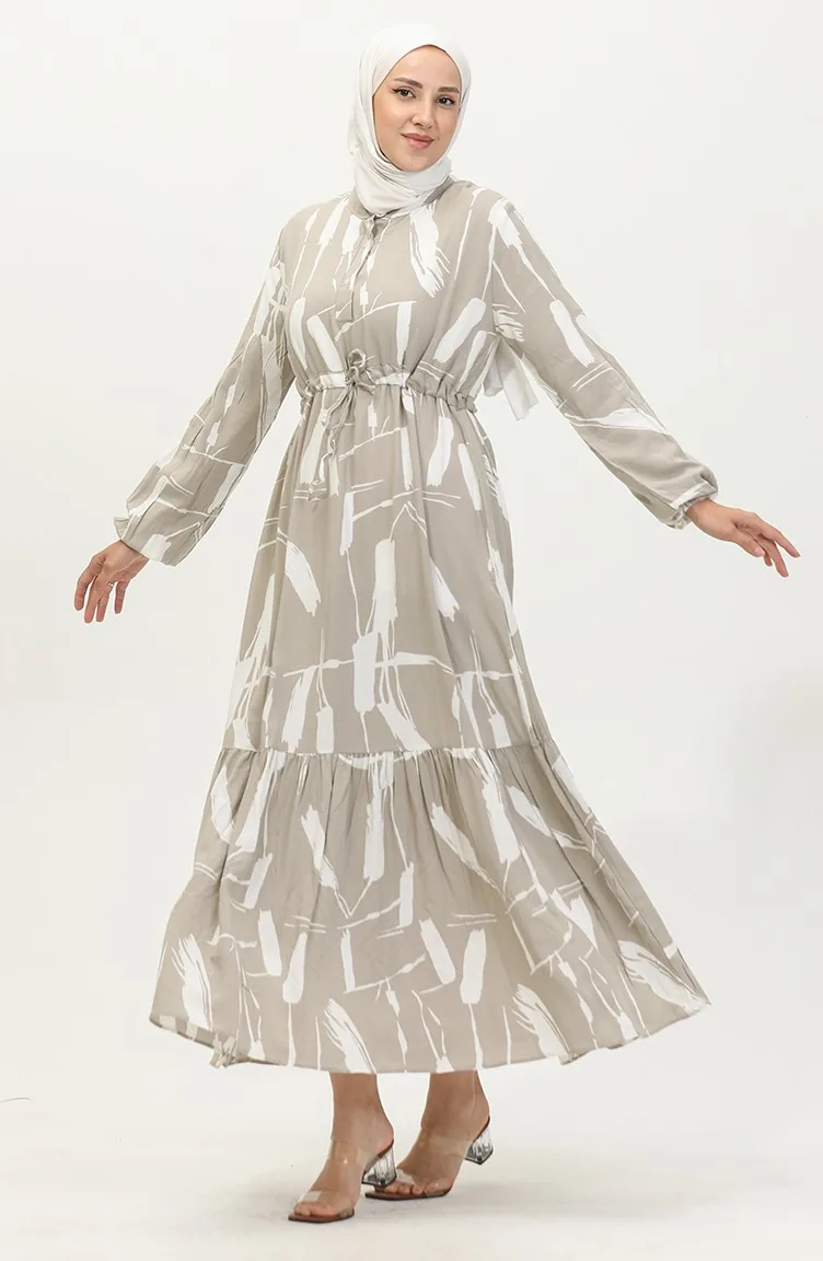 Viscose Brush Pattern Gathered Dress 81869-02 Mink 81869-02