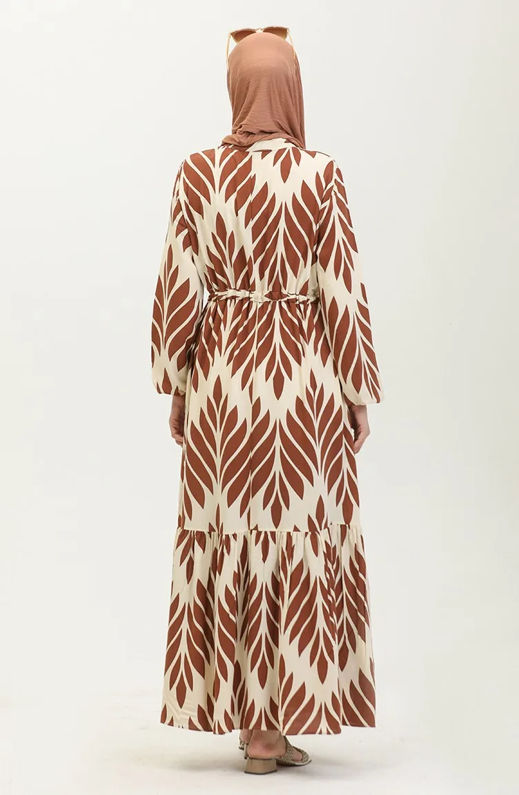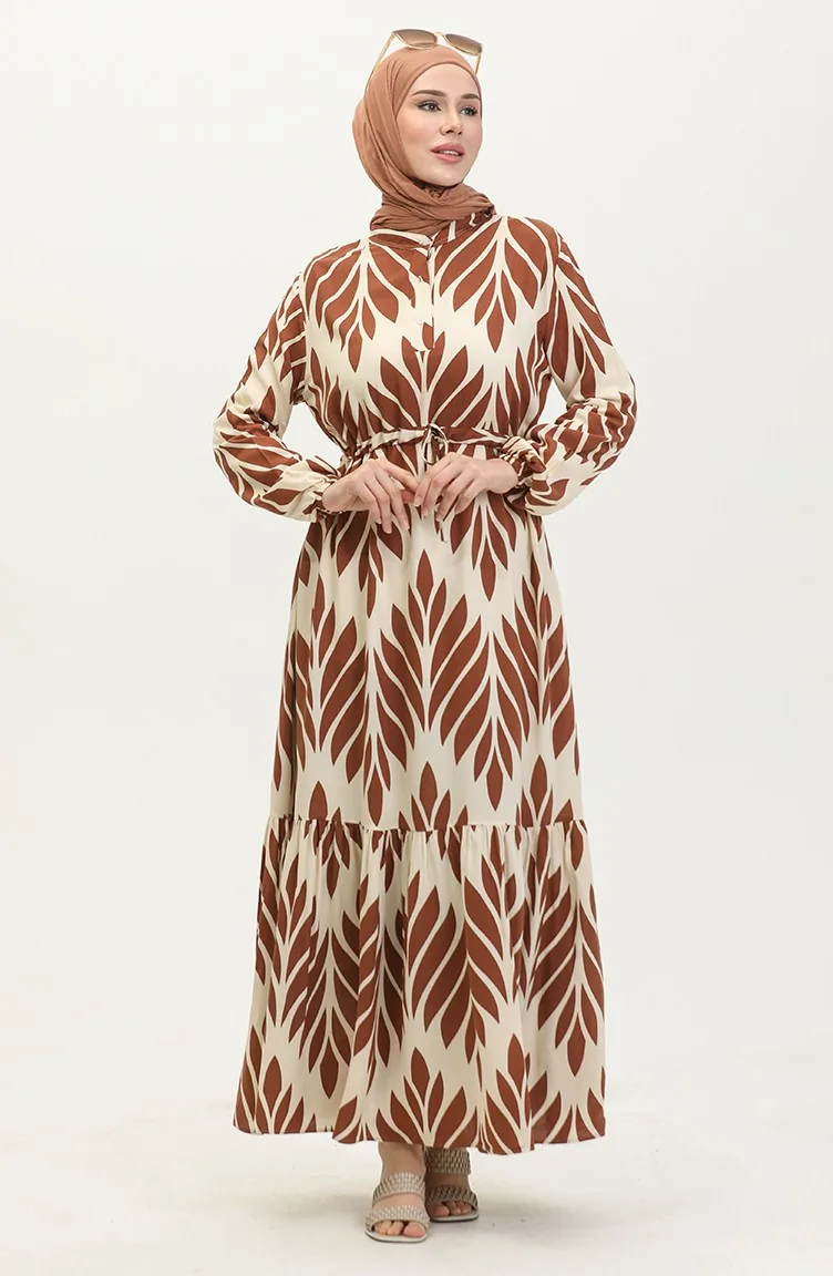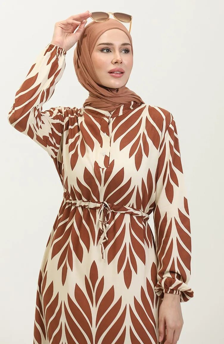 Viscose Brush Pattern Gathered Dress 81869-06 Tan 81869-06