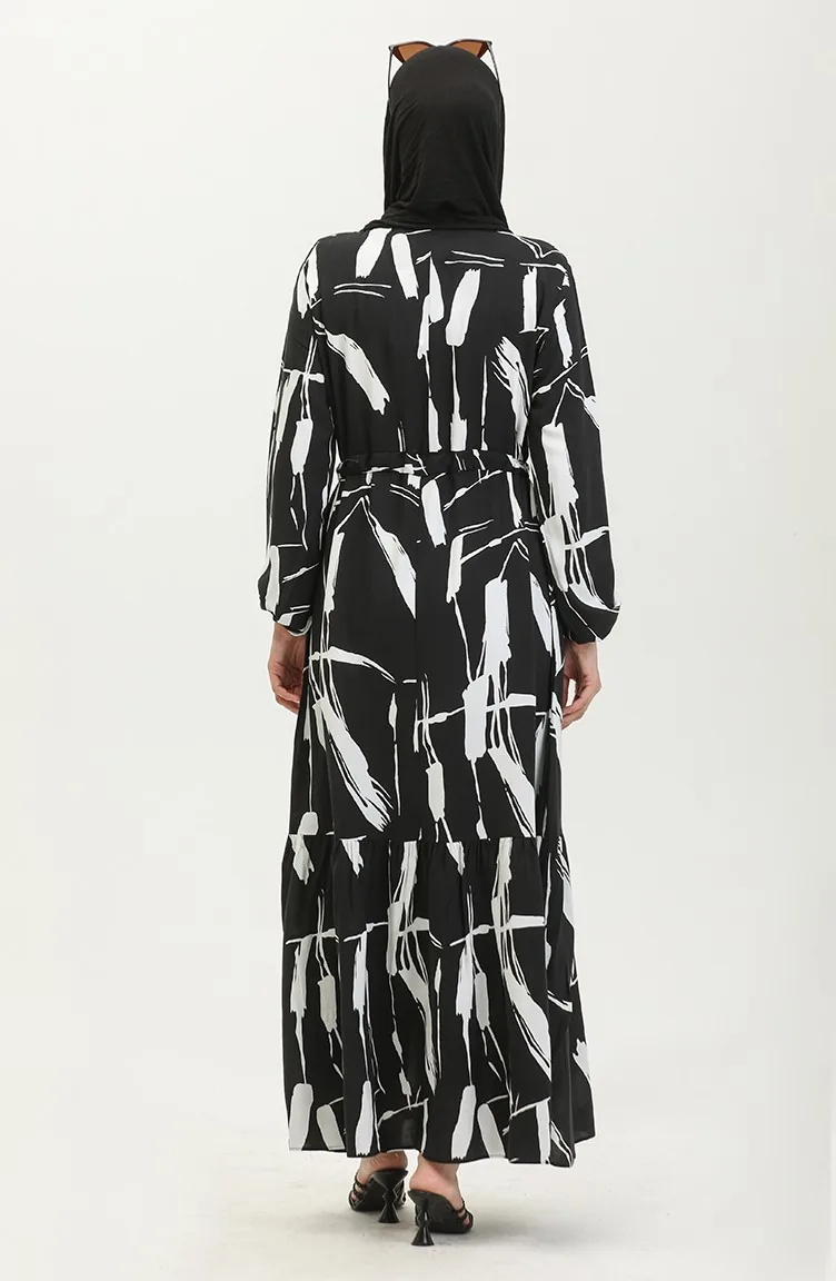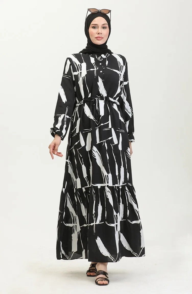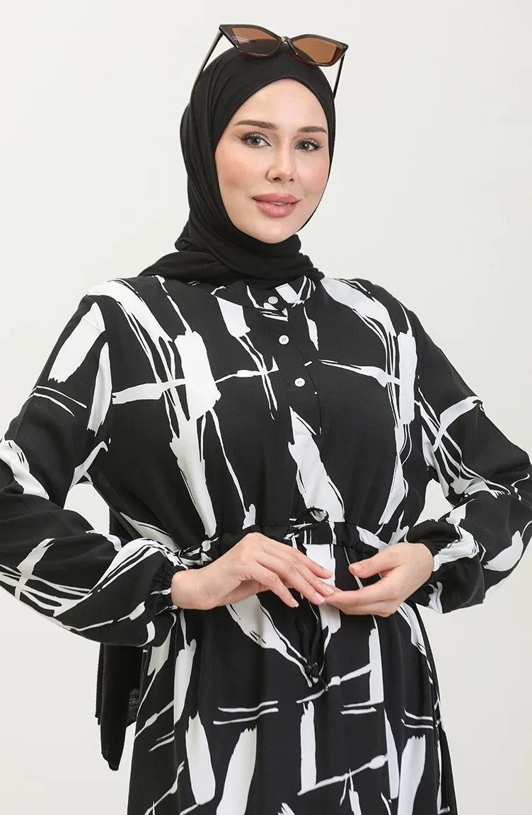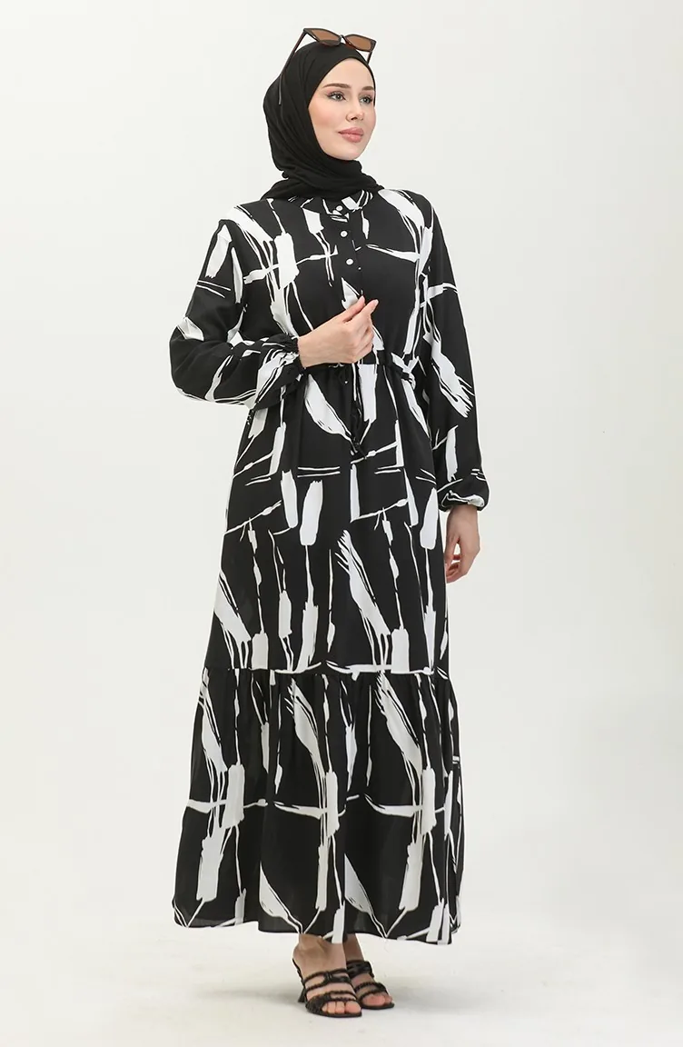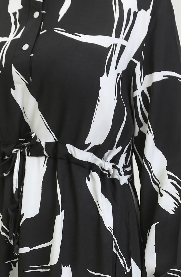 Viscose Brush Pattern Gathered Dress 81869-08 Black 81869-08
