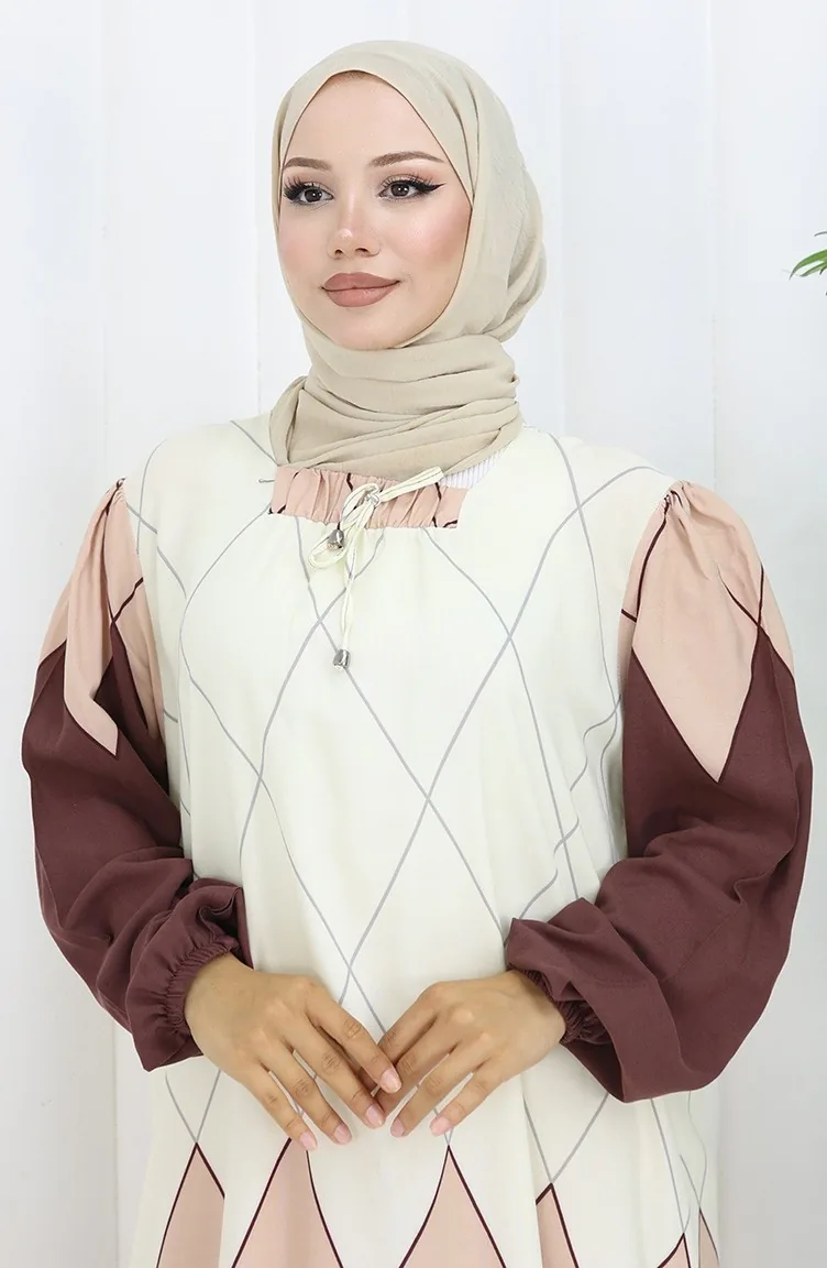 Viscose Collar Dress With Water-Solid Skirt 984585E-02 Mink 984585E-02