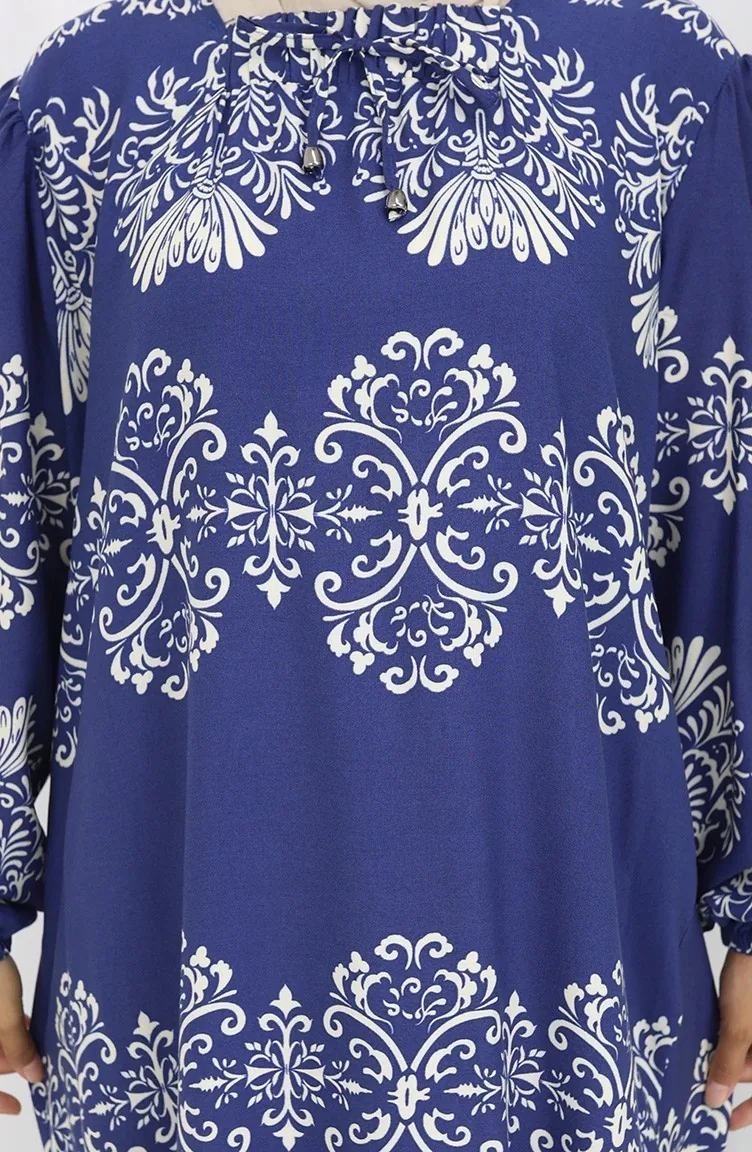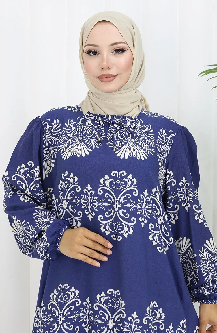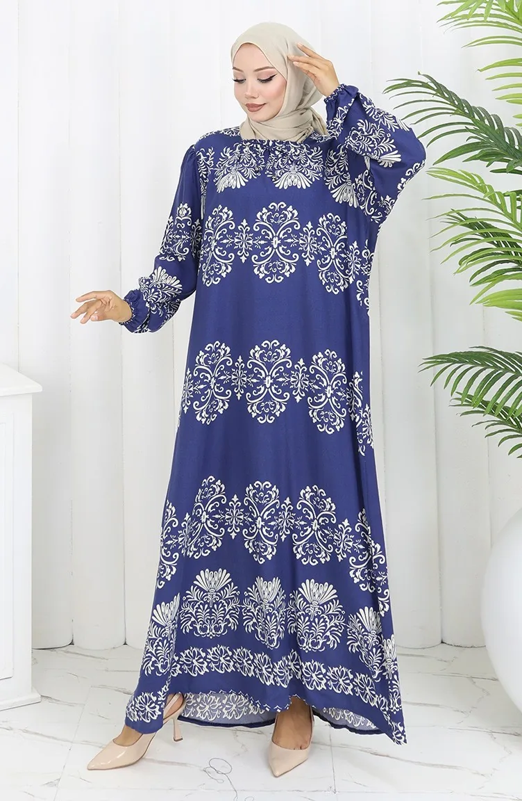 Indigo color is used. Viscose is a type of synthetic fabric and is convenient to use. Designed with patterned fabric. Long sleeve product. Designed for summer use. Woman. Plus size option available.
