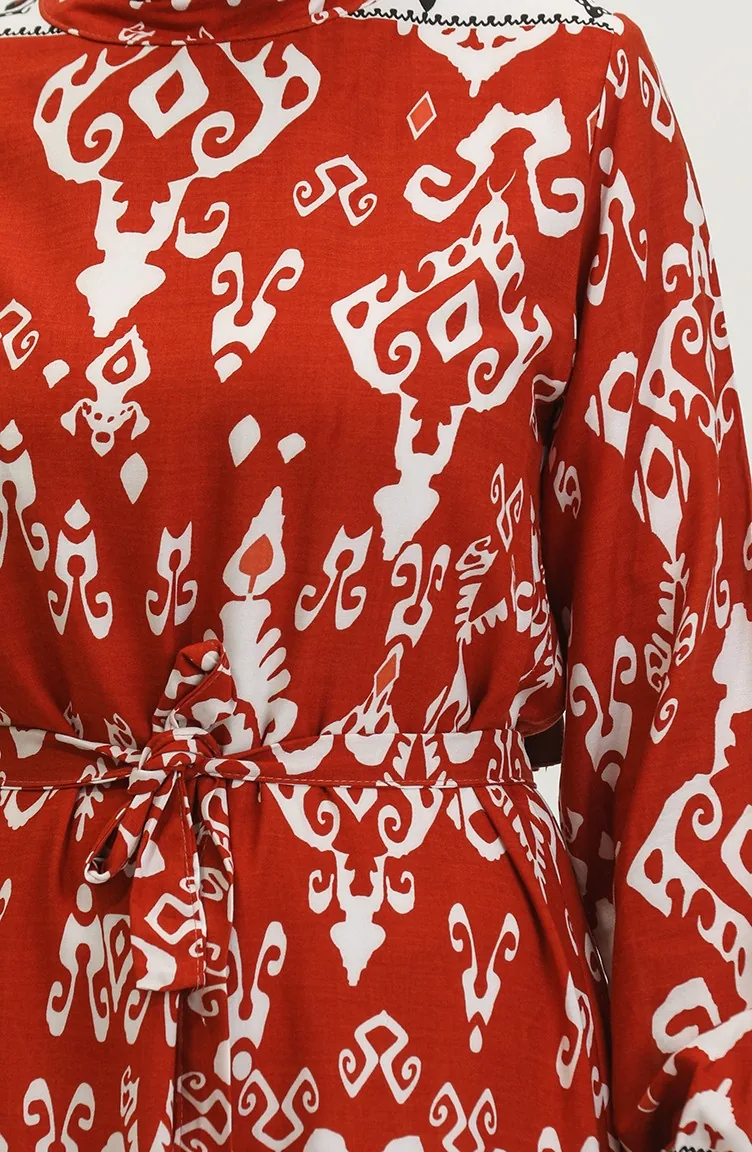 Viscose Color Garnished Dress 0385-02 Brick 0385-02