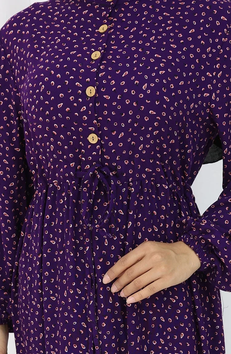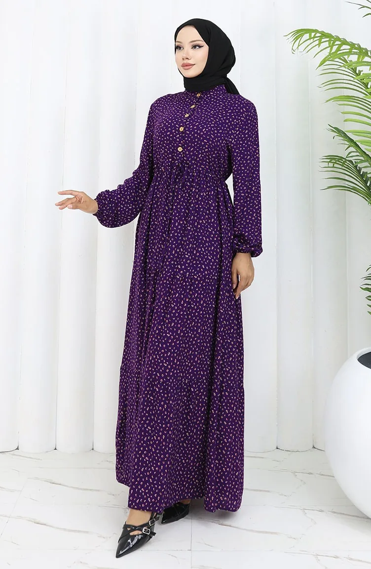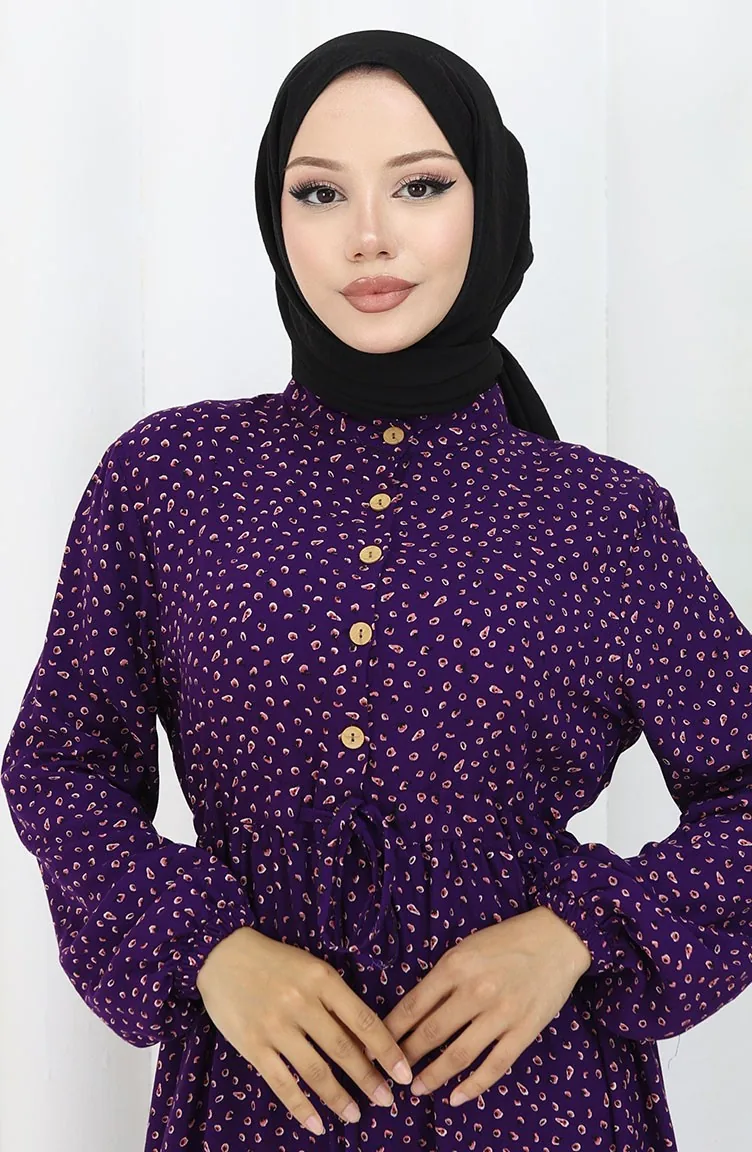 Viscose Fabric Half Buttoned Patterned Dress 0068-01 Purple 0068-01