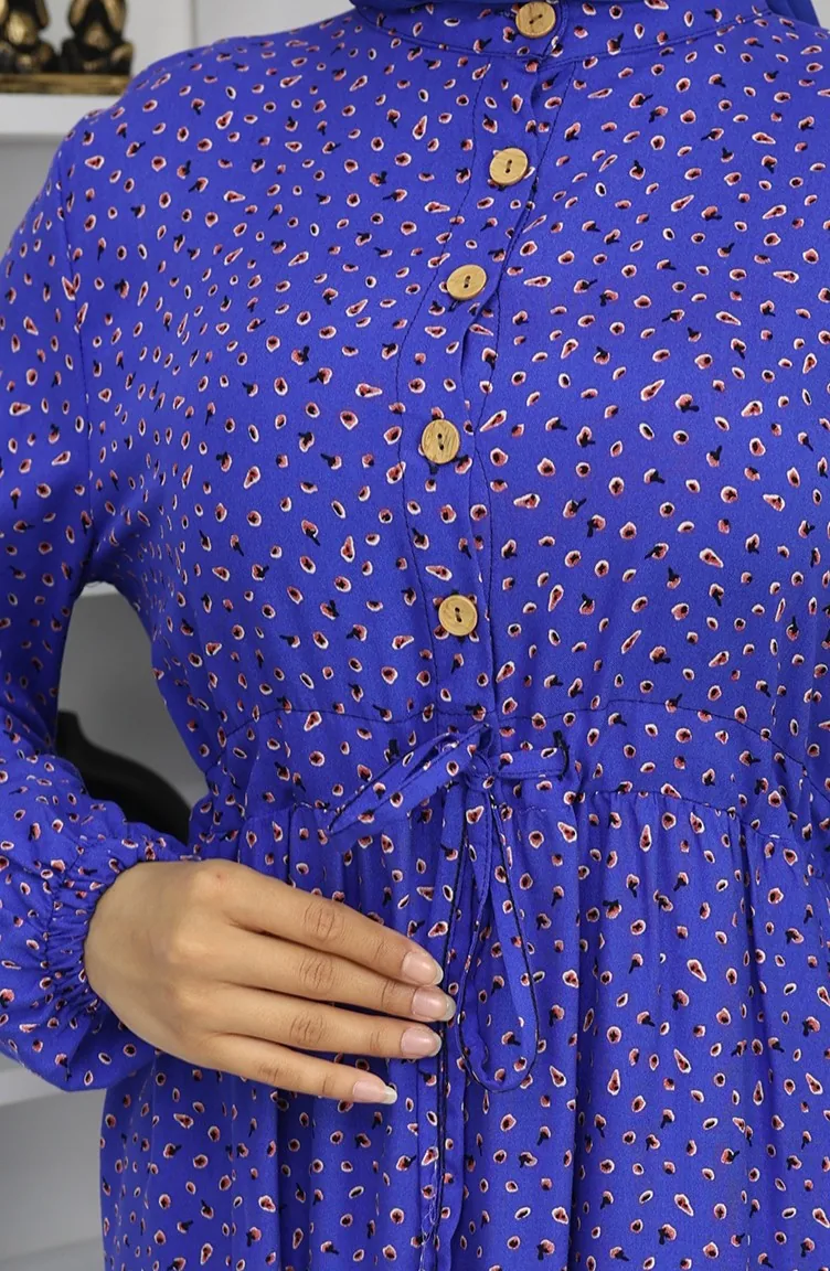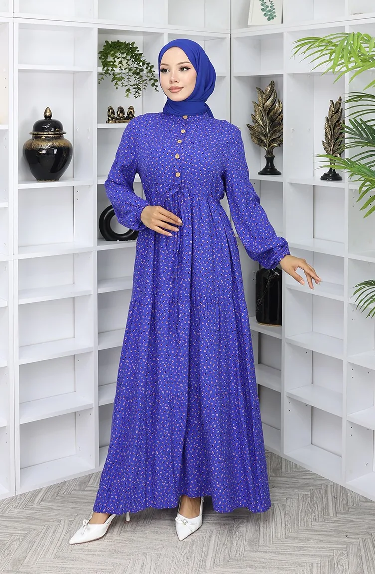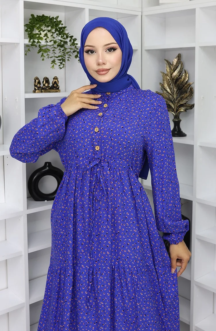 Viscose Fabric Half Buttoned Patterned Dress 0068-02 Saks 0068-02