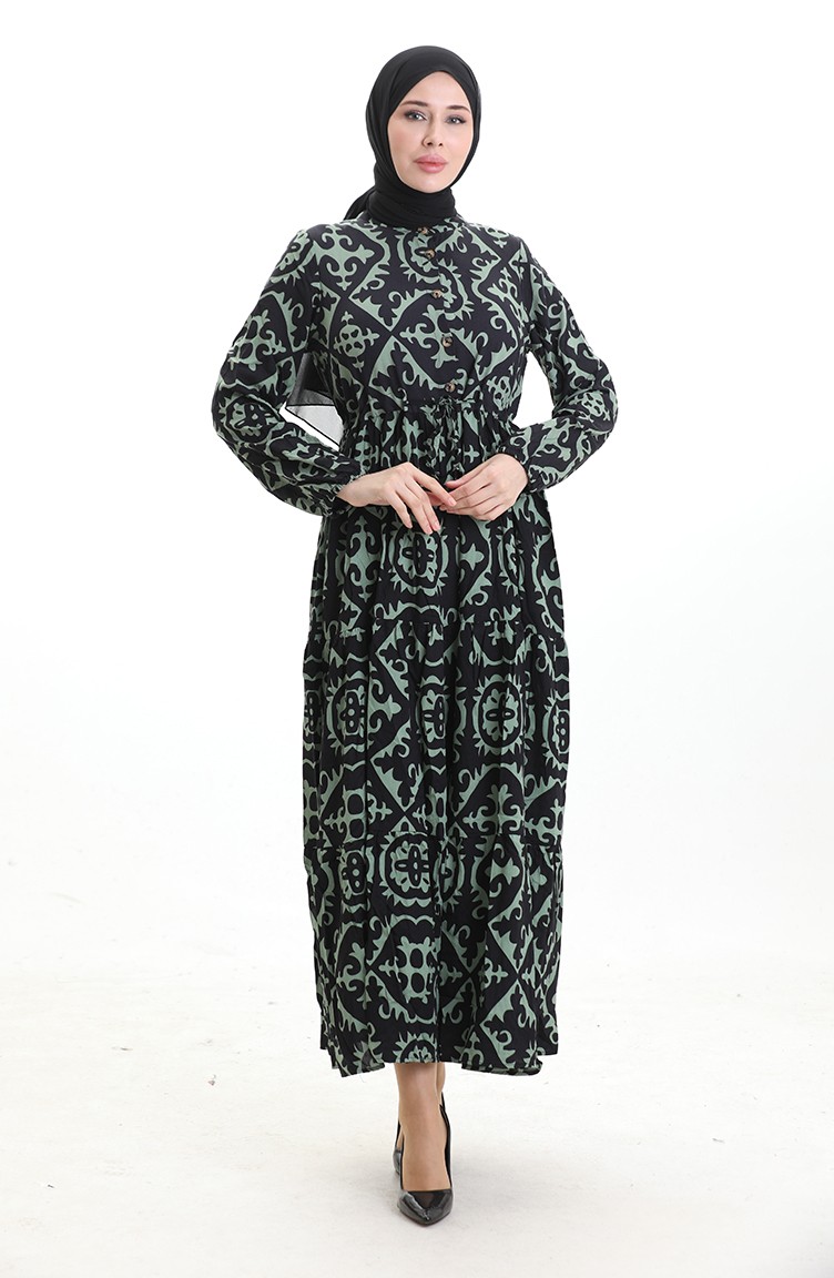 Viscose Fabric Tied Waist Dress 7134-01 Almond Green 7134-01