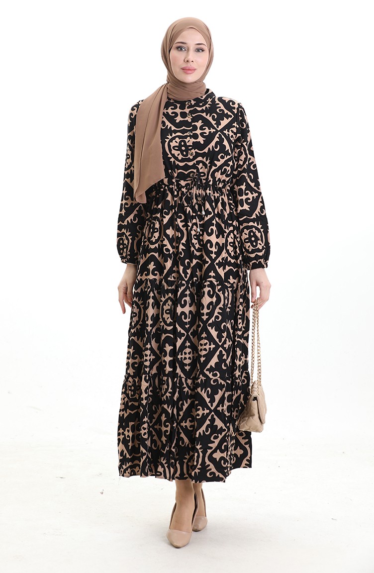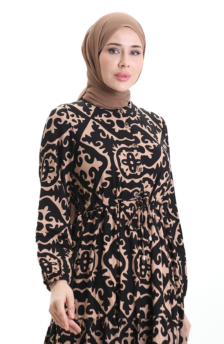 Viscose Fabric Tied Waist Dress 7134-02 Mink 7134-02