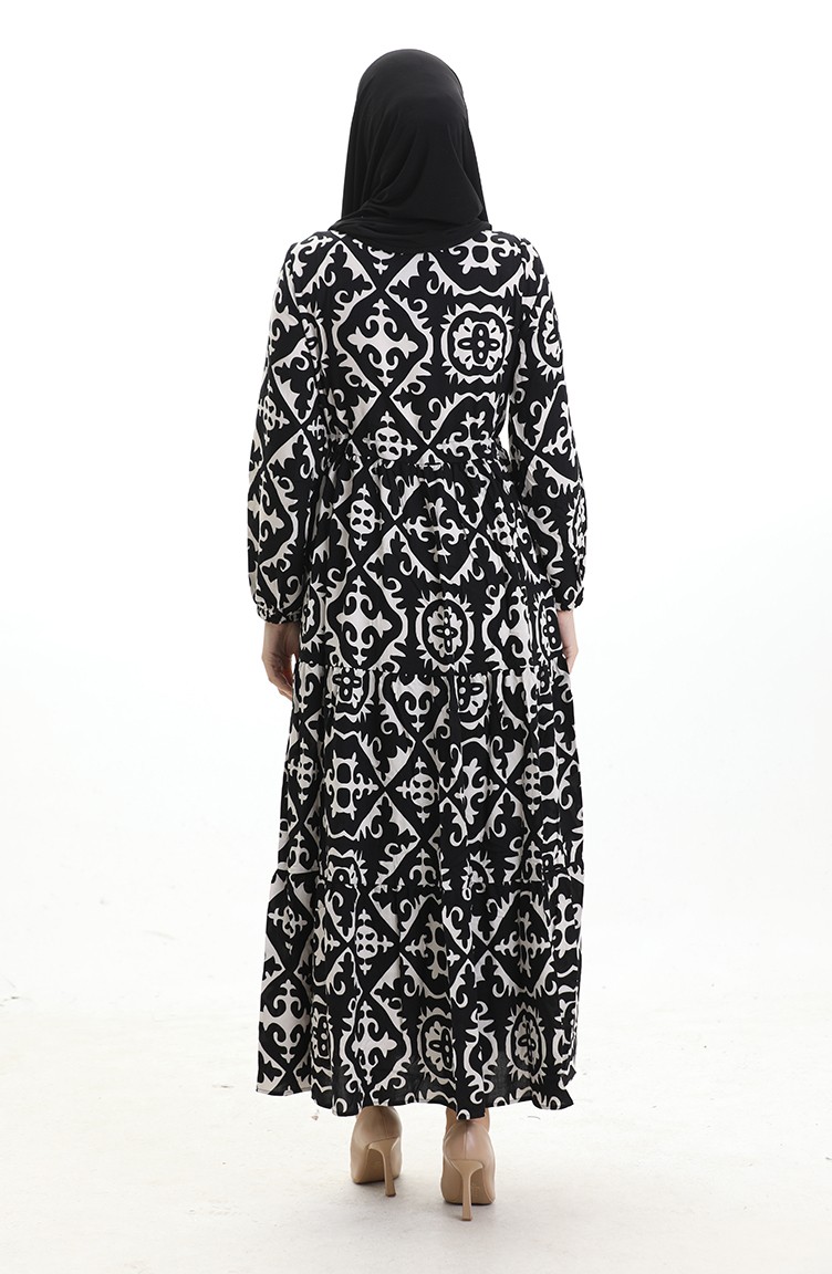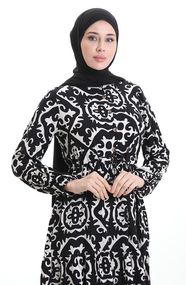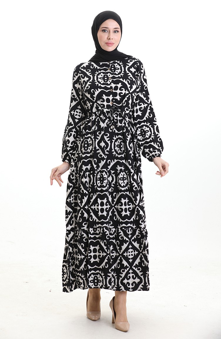 Viscose Fabric Tied Waist Dress 7134-03 Black 7134-03