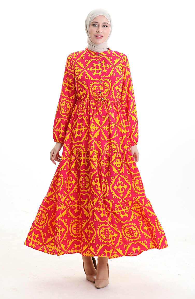 Viscose Fabric Tied Waist Dress 7134-04 Fuchsia 7134-04