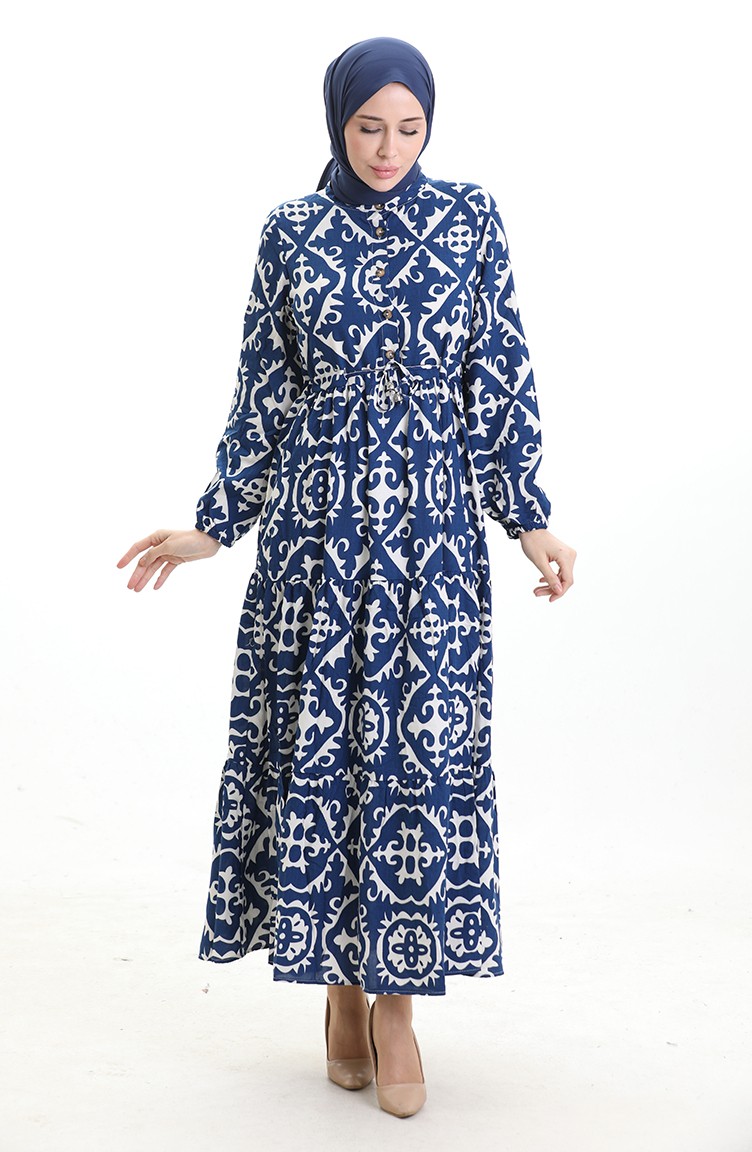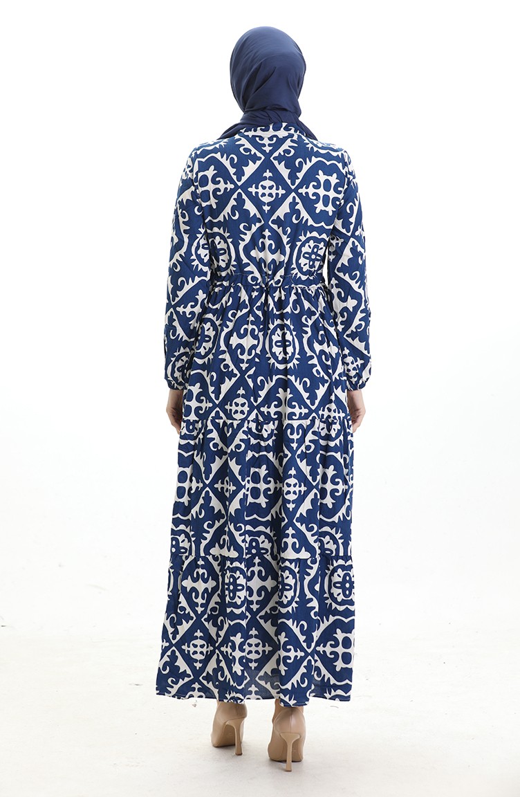 Viscose Fabric Tied Waist Dress 7134-05 Blue 7134-05