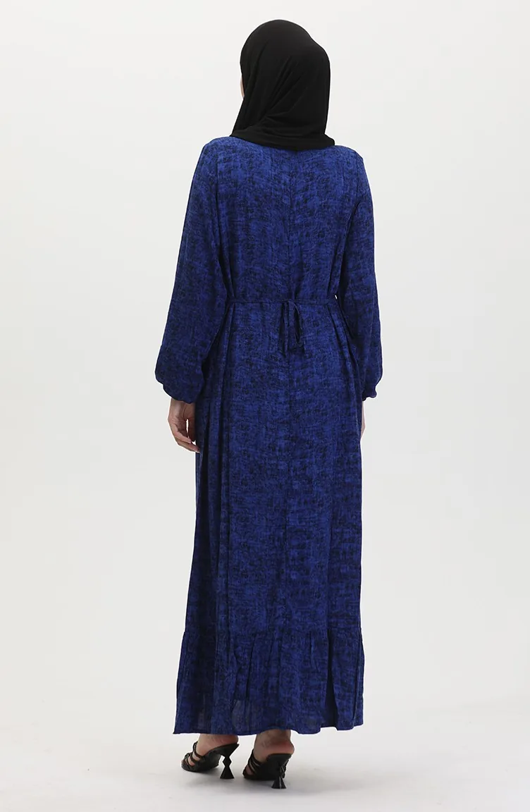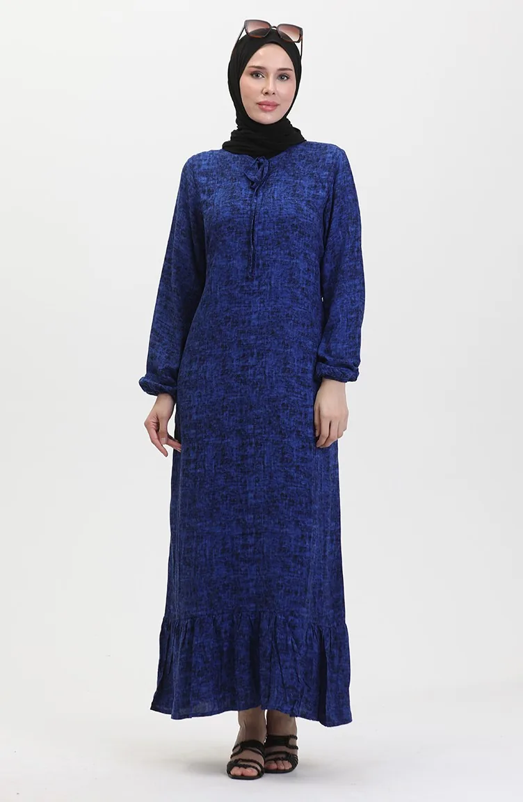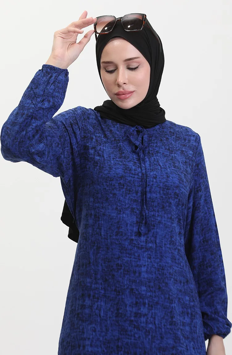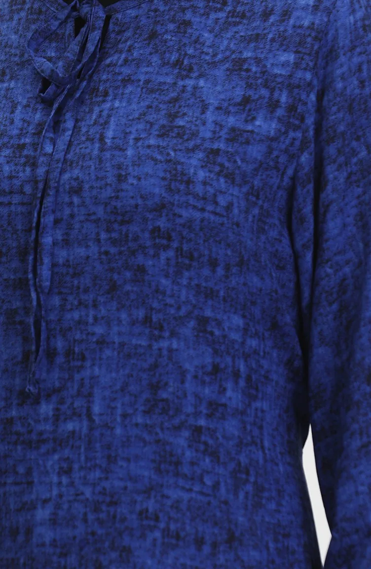 Saxon blue color is used. Viscose is a type of synthetic fabric and is convenient to use. Designed with patterned fabric. The product is used unlined. It is cut in the shape of a V-neck that adds a different air. The size worn by the model, is the one on the image.