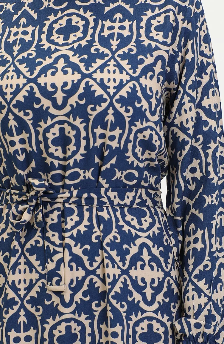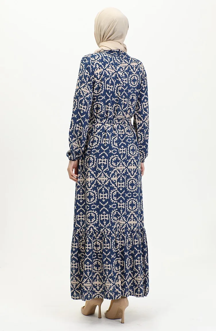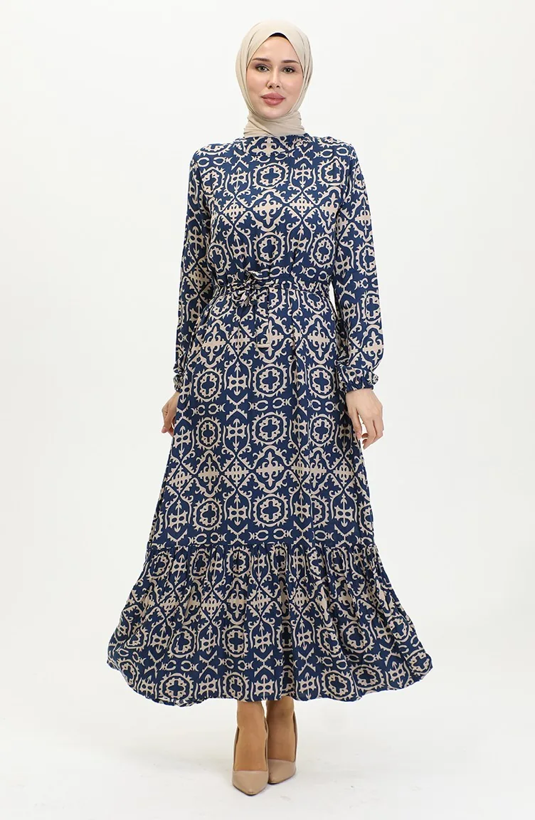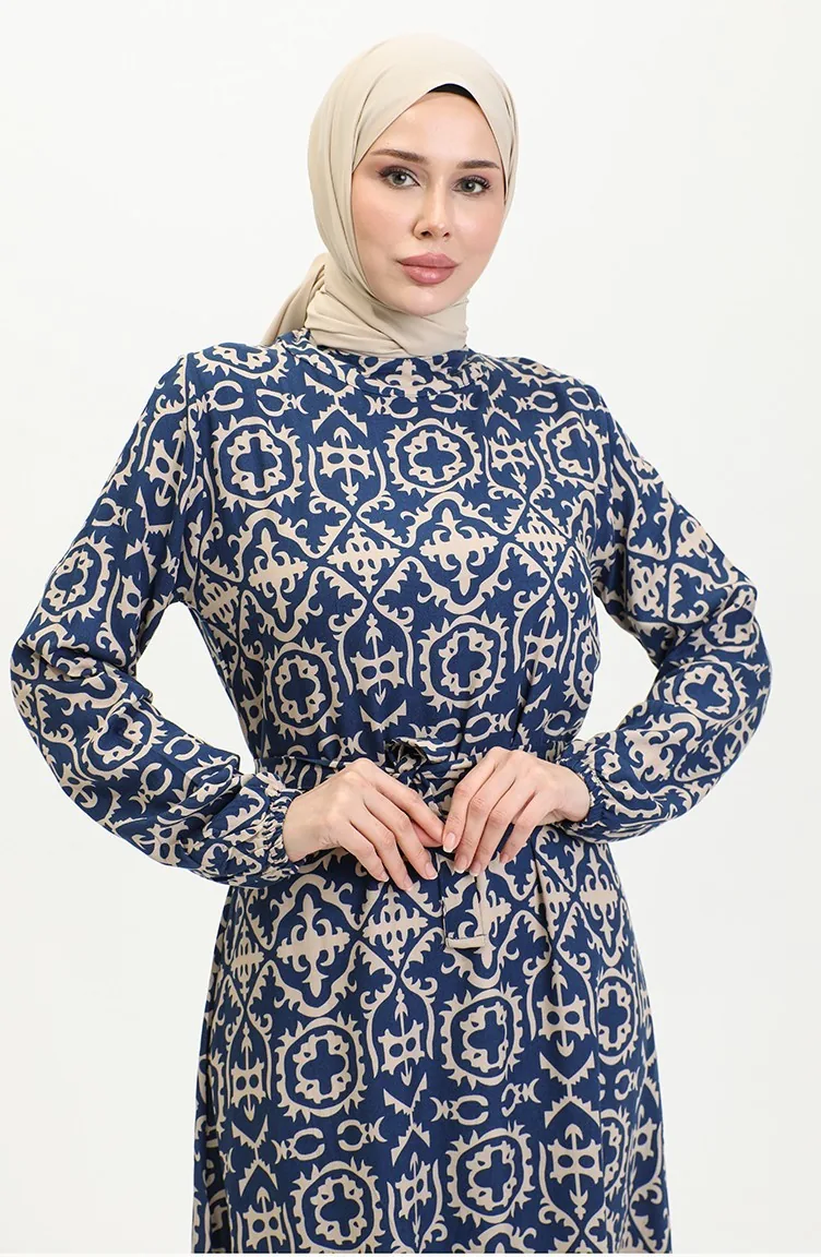 Viscose Patterned Dress 0362-04 Navy Blue 0362-04