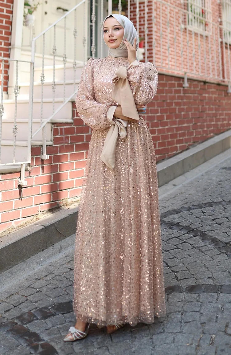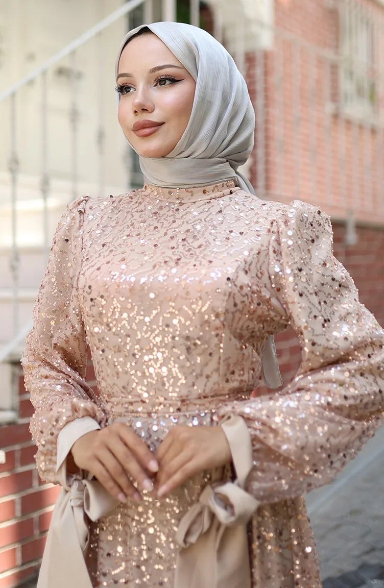 Beaded Evening Dress 5801-02 Beige 5801-02