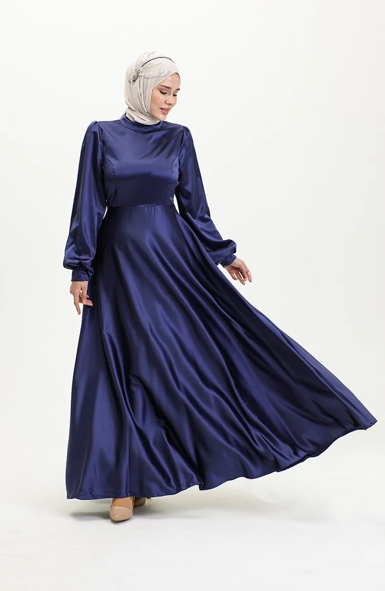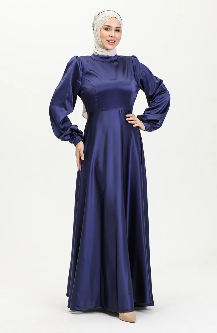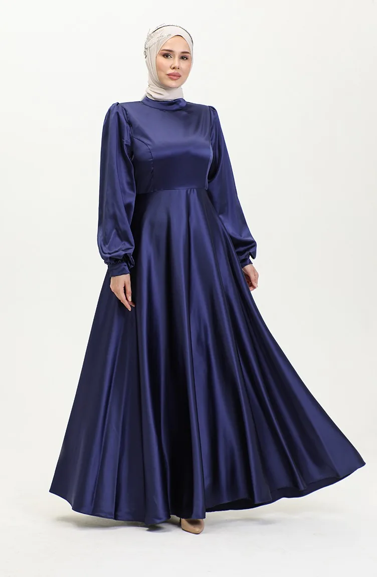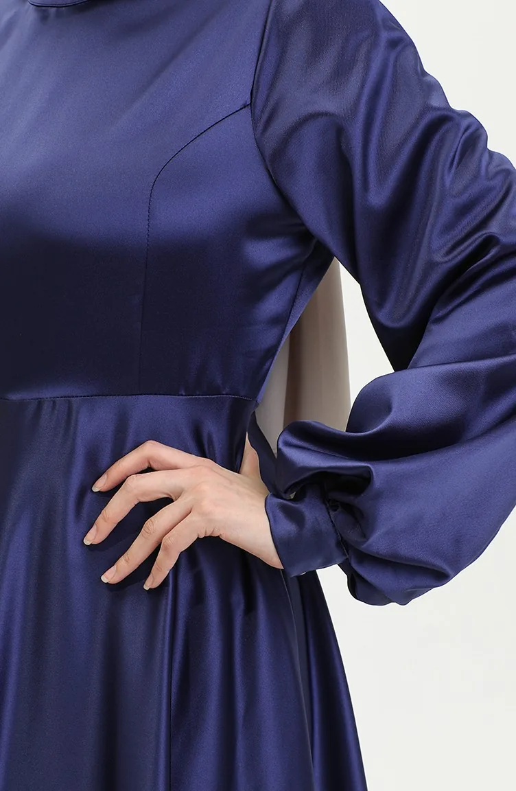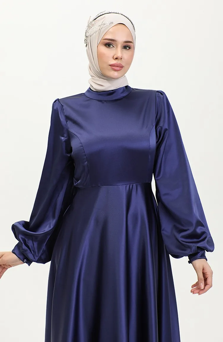 Cupped Satin Evening Dress 52895-05 Navy Blue 52895-05