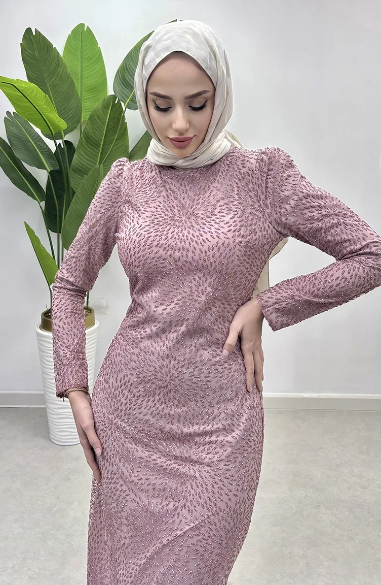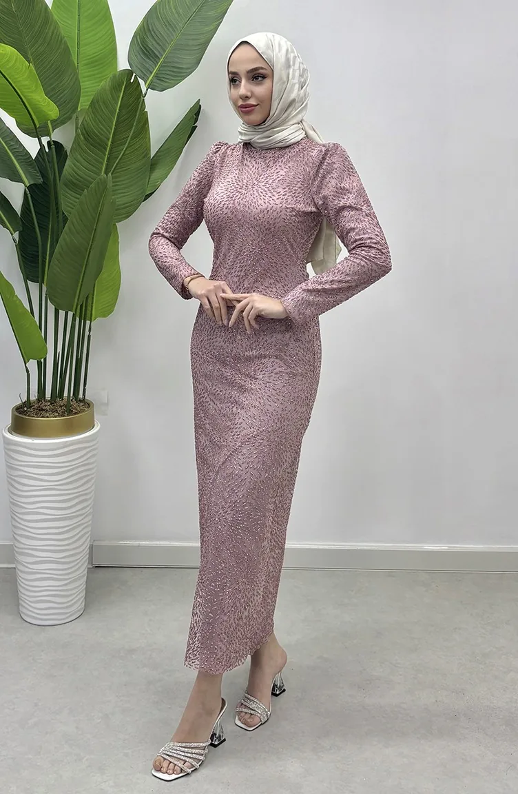 Glitter Tulle Evening Dress 5517-02 Powder 5517-02