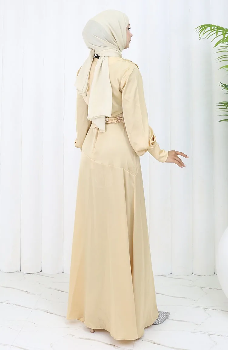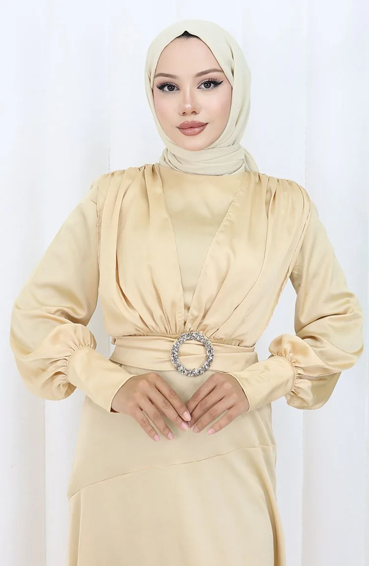 Layered Satin Evening Dress 6001-03 Beige 6001-03