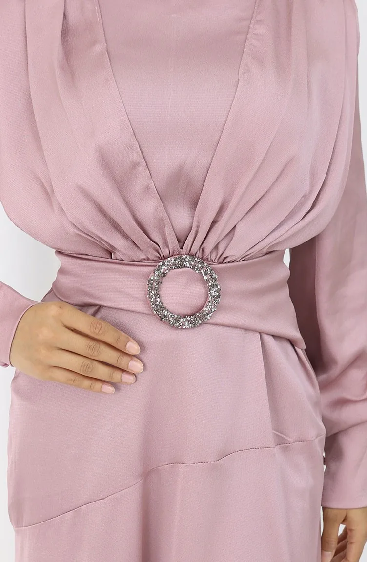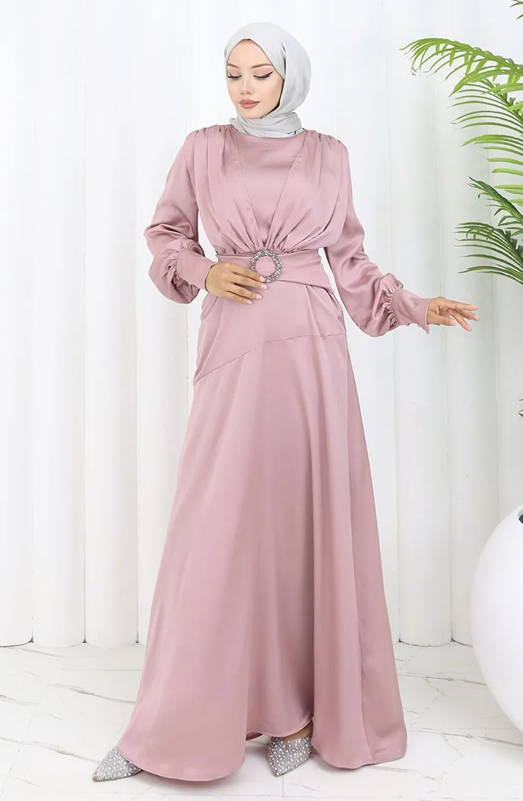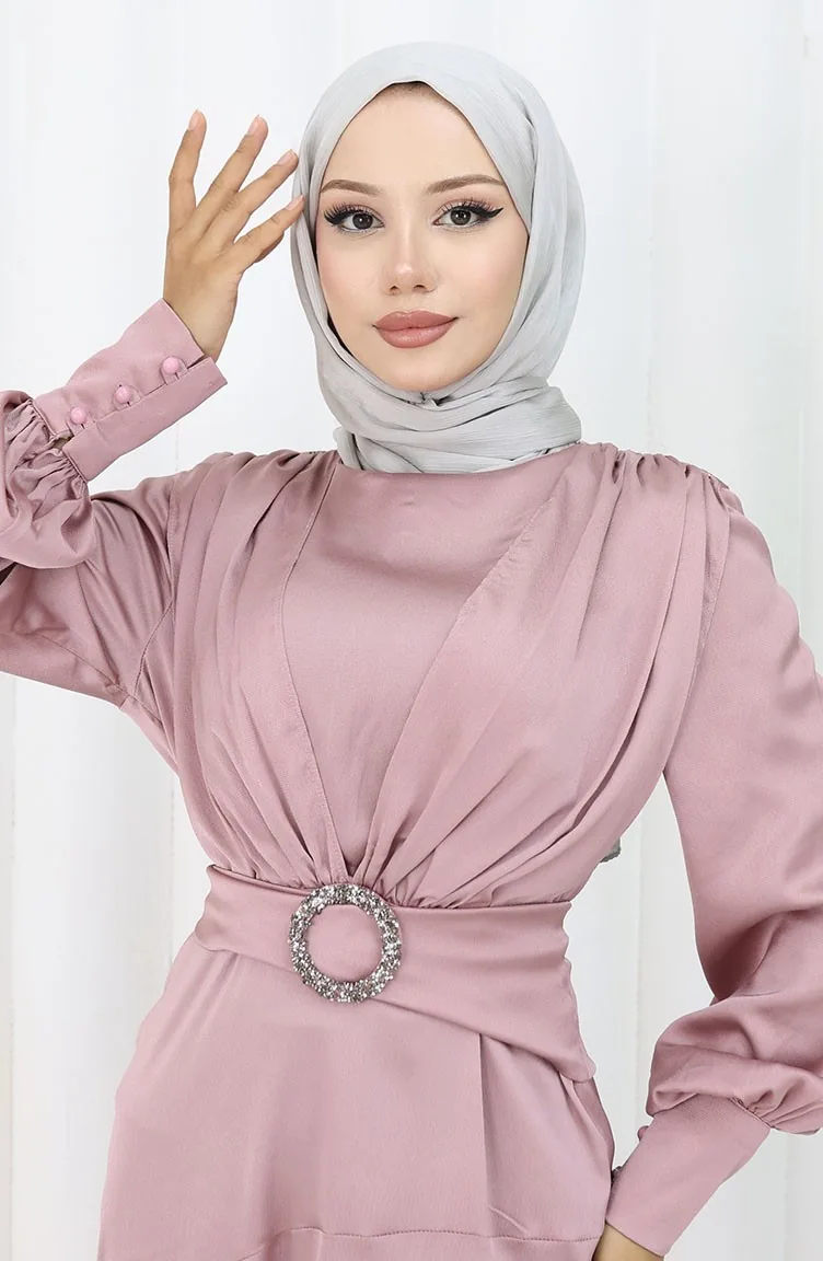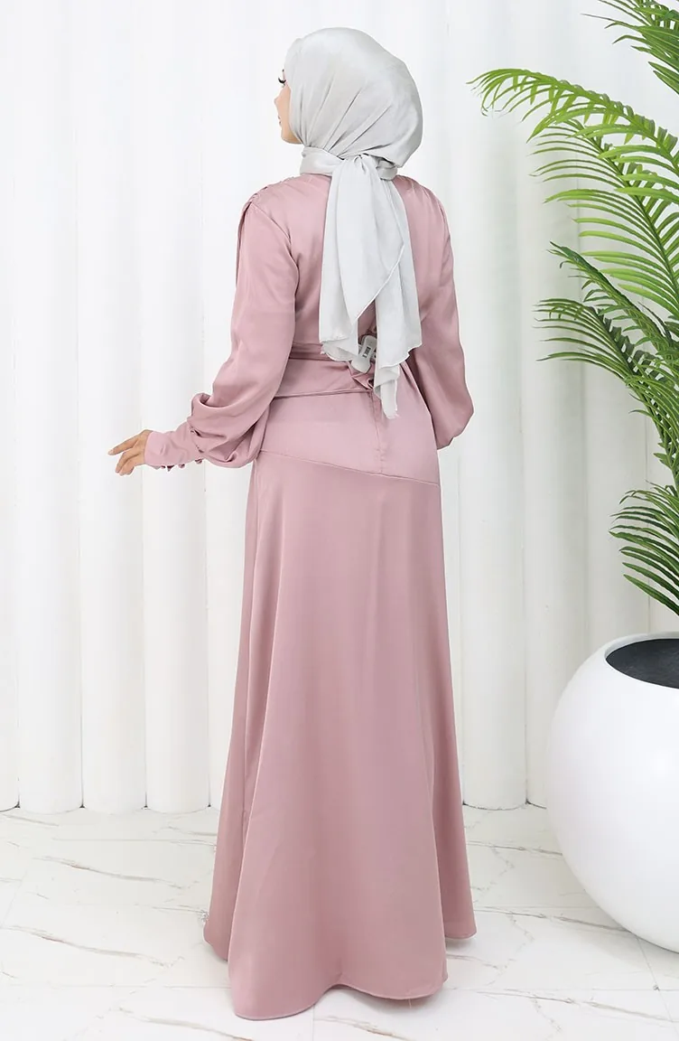 The satin fabric has an elegant texture, pleasant and precise in terms of appearance compared to other types. It has a plain appearance. Belt detail has used for a stylish look. Suitable for 4 seasons. Length is adjusted according to standard size measurements.