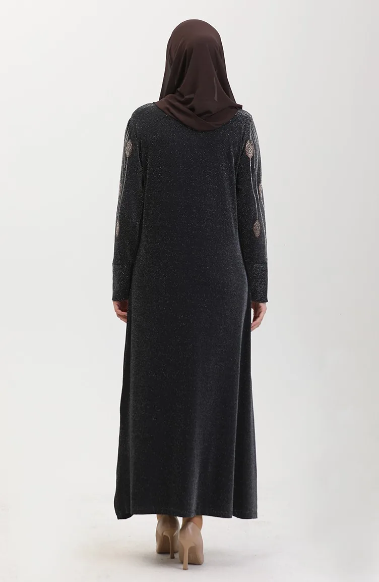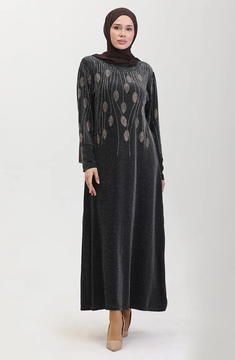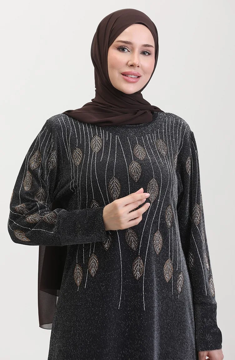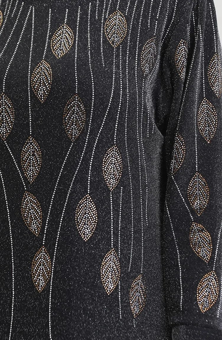Black color is used. Polyester fabric often prevents wrinkling. Designed with patterned fabric. The product is used unlined. Suitable for 4 seasons. Plus size option available.