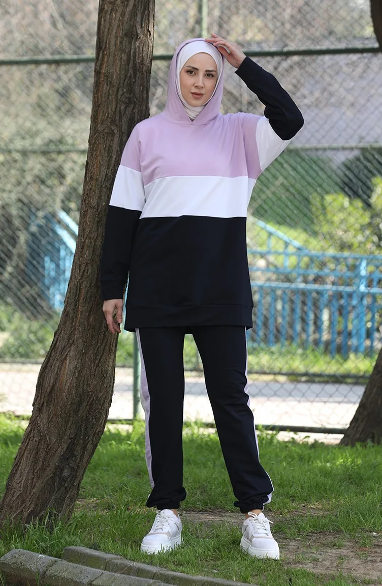 Two Piece Tracksuit Set 24001-08 Lilac Navy Blue 24001-08