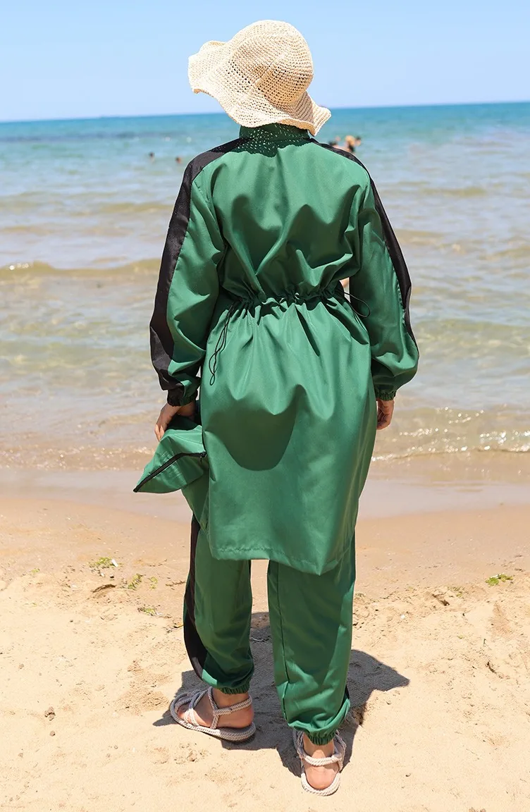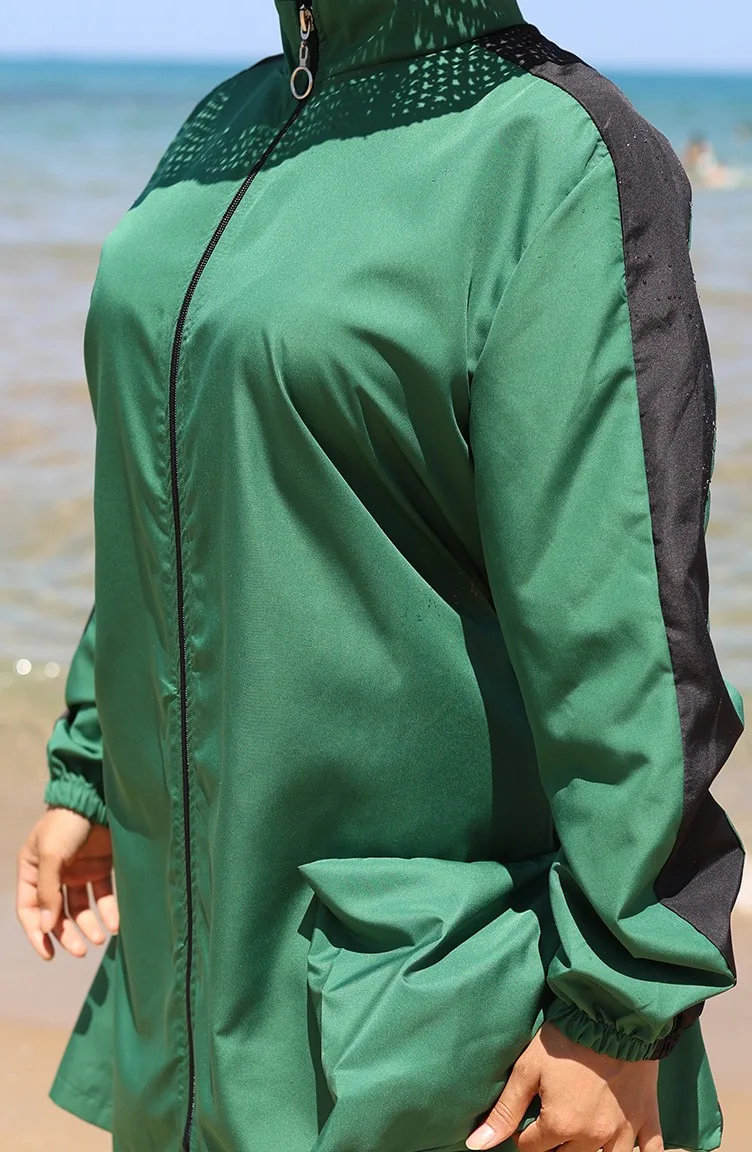 Garnished Zippered Modest Swimsuit 6565-04 Emerald Green 6565-04