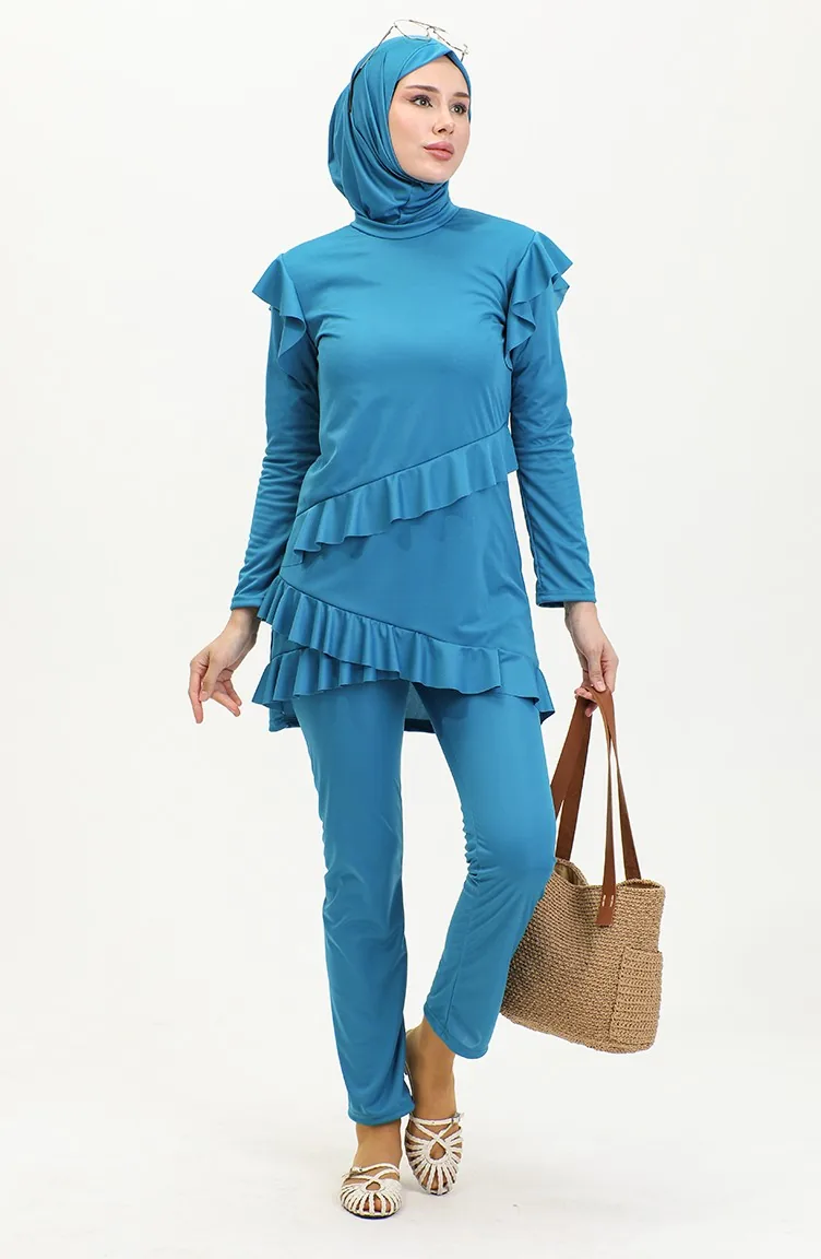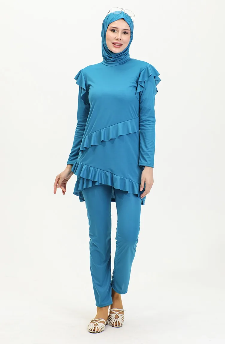 Ruffled Long Sleeve Hijab Swimsuit 2208-03 Oil 2208-03