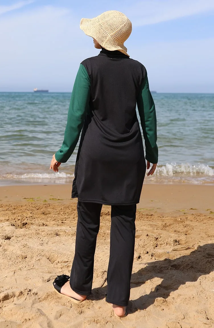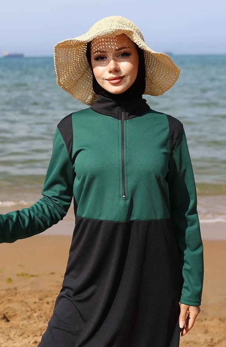 Zippered Hijab Swimsuit 2508-01 Emerald Green Black 2508-01